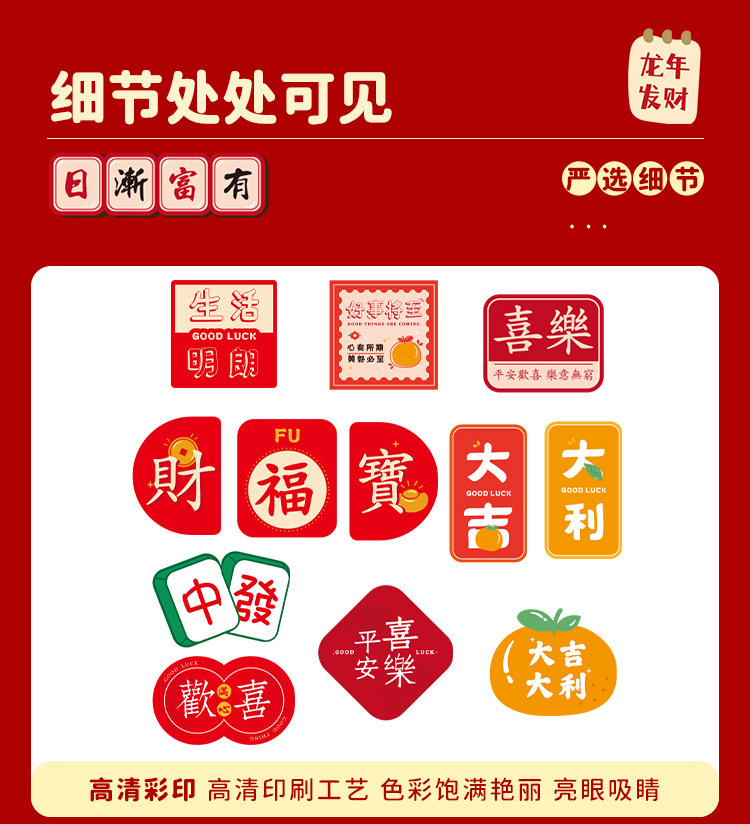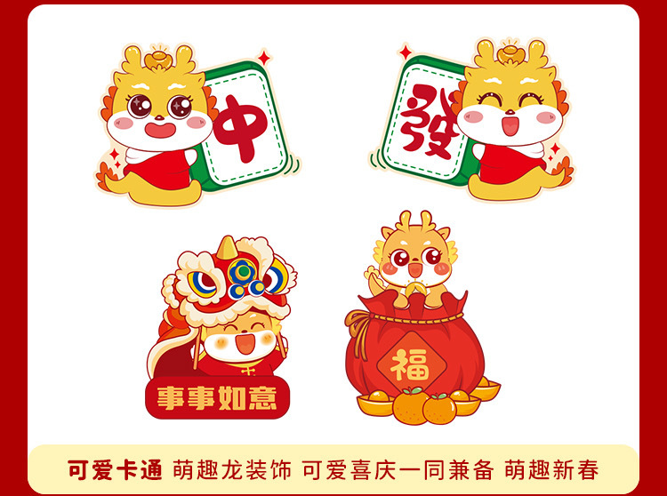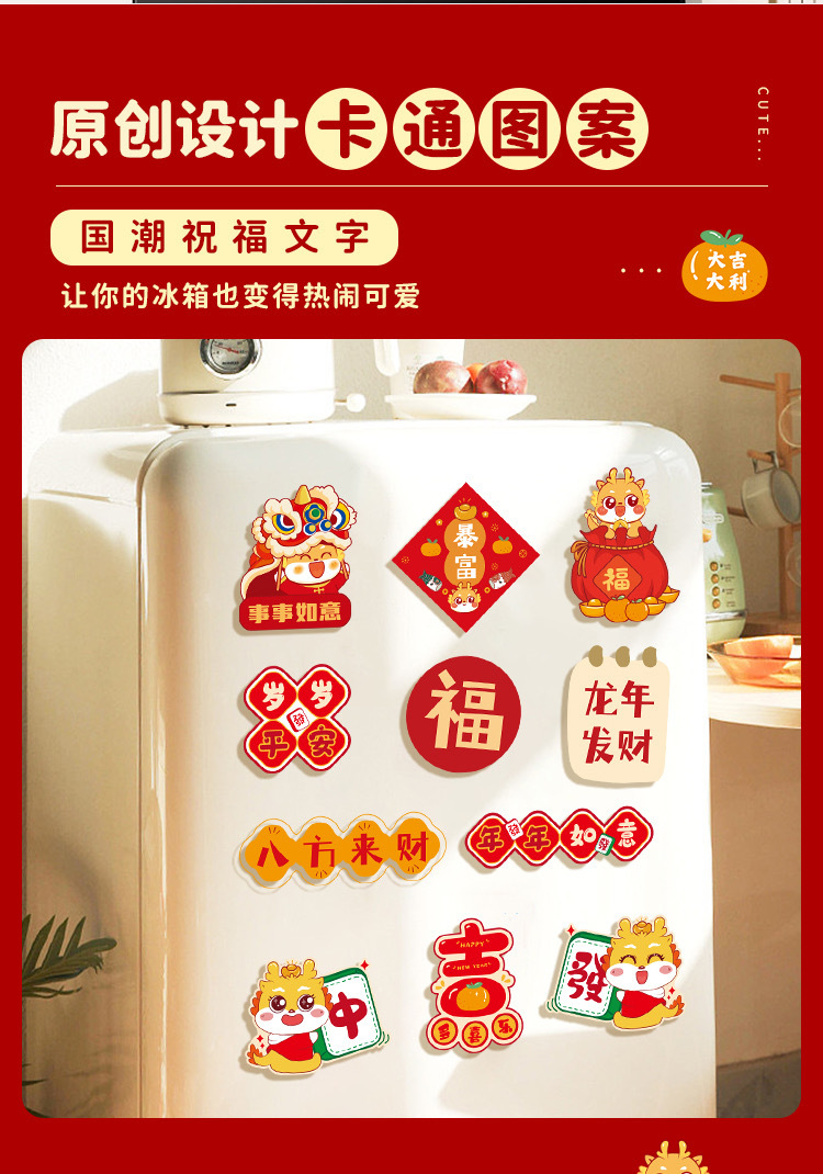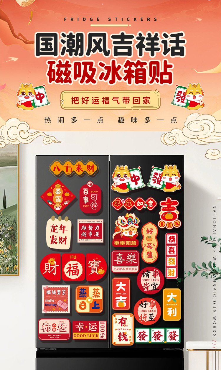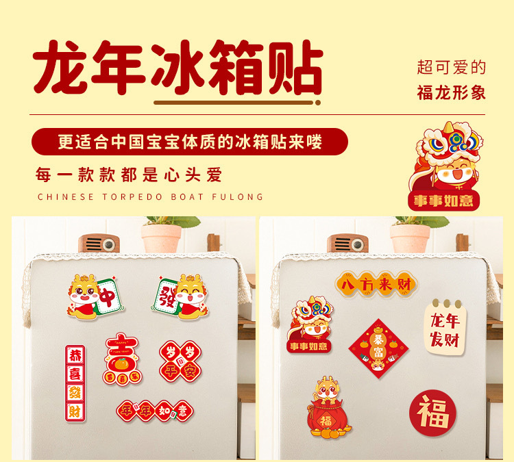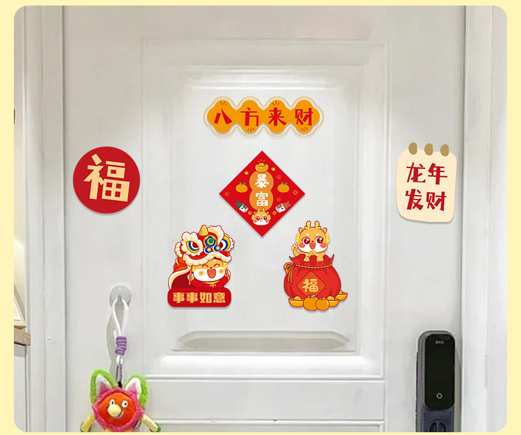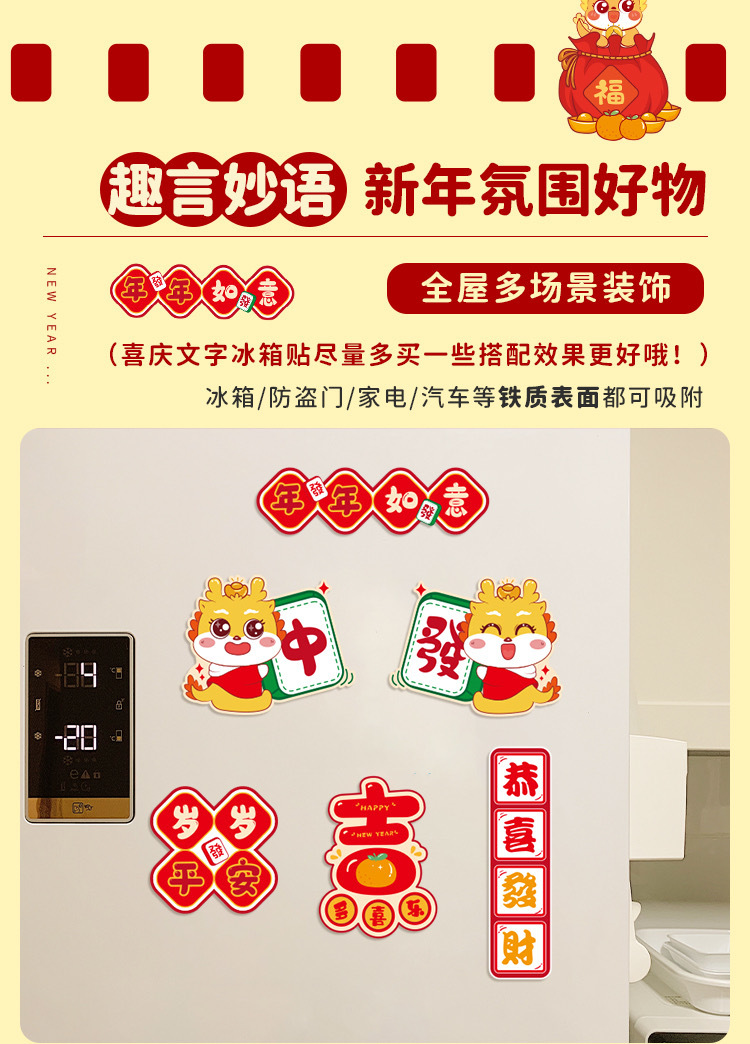 【买一送一 到手12件】龙年冰箱贴磁吸2024新年春节装饰品门贴个性对联磁贴喜庆 过年布置