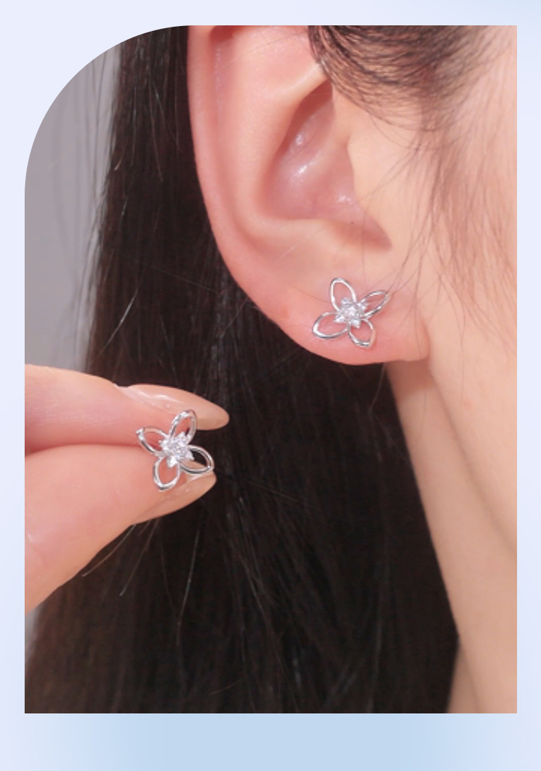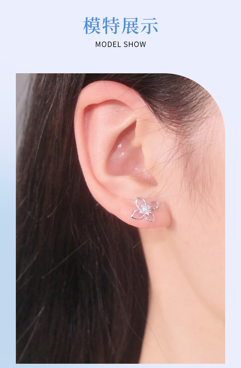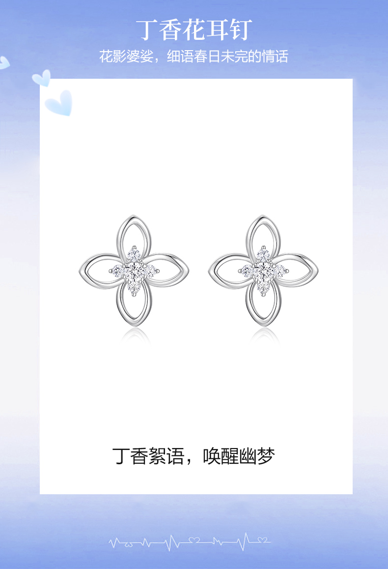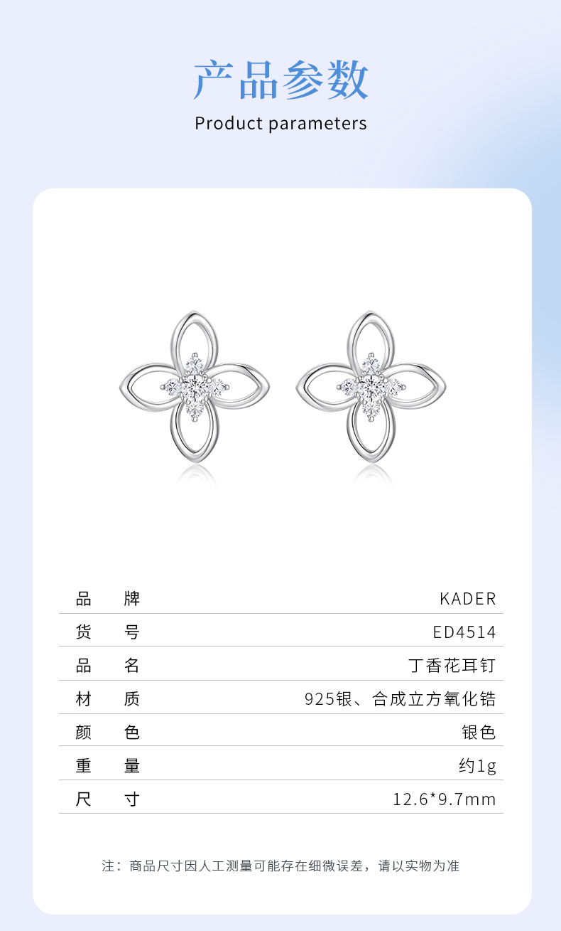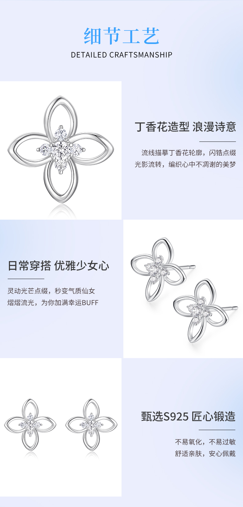 卡蒂罗/KADER 丁香花耳钉 幸运四叶草造型转运设计简约时尚通勤百搭纯银耳饰 温柔浪漫春焕新气质养耳洞配饰