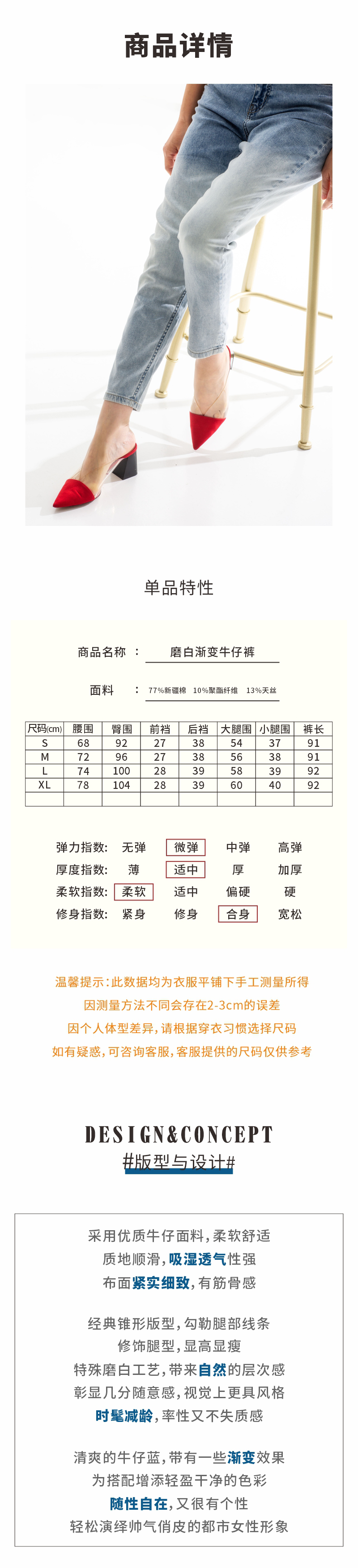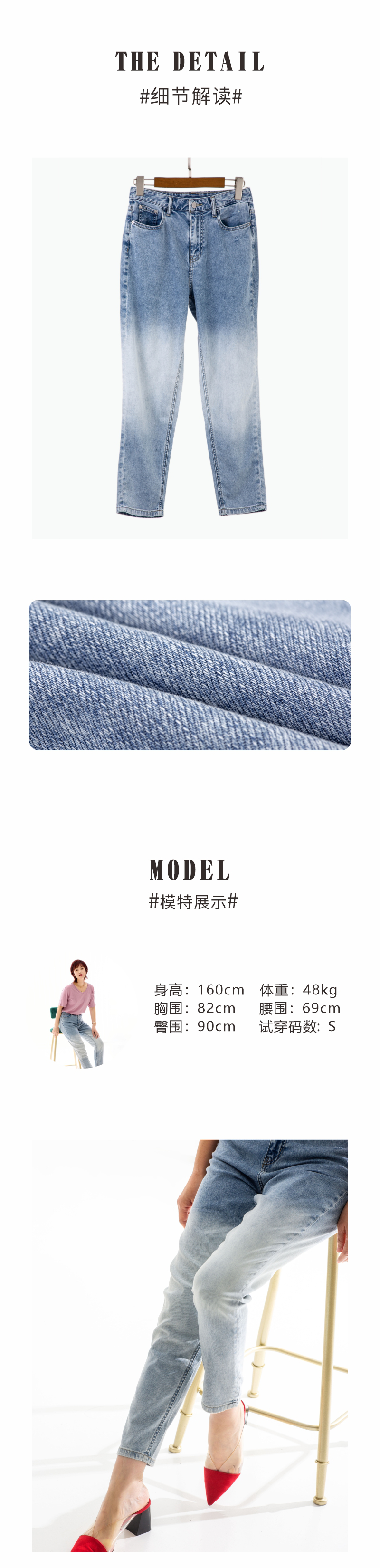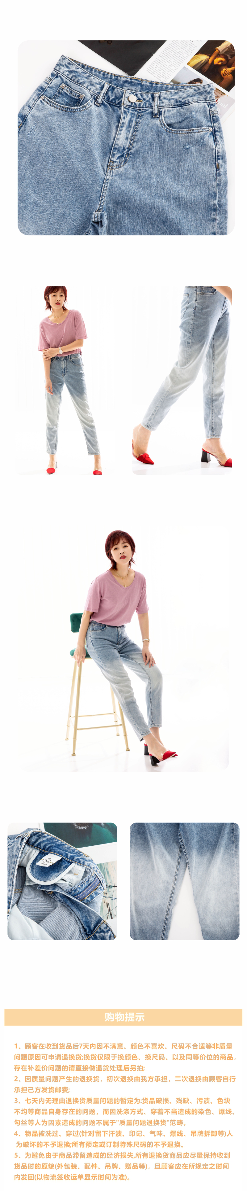 磨白渐变牛仔裤