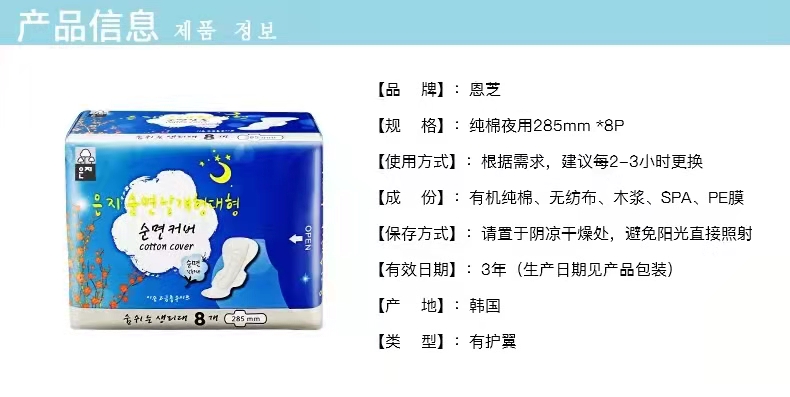 恩芝夜用卫生巾加长 330mm4片