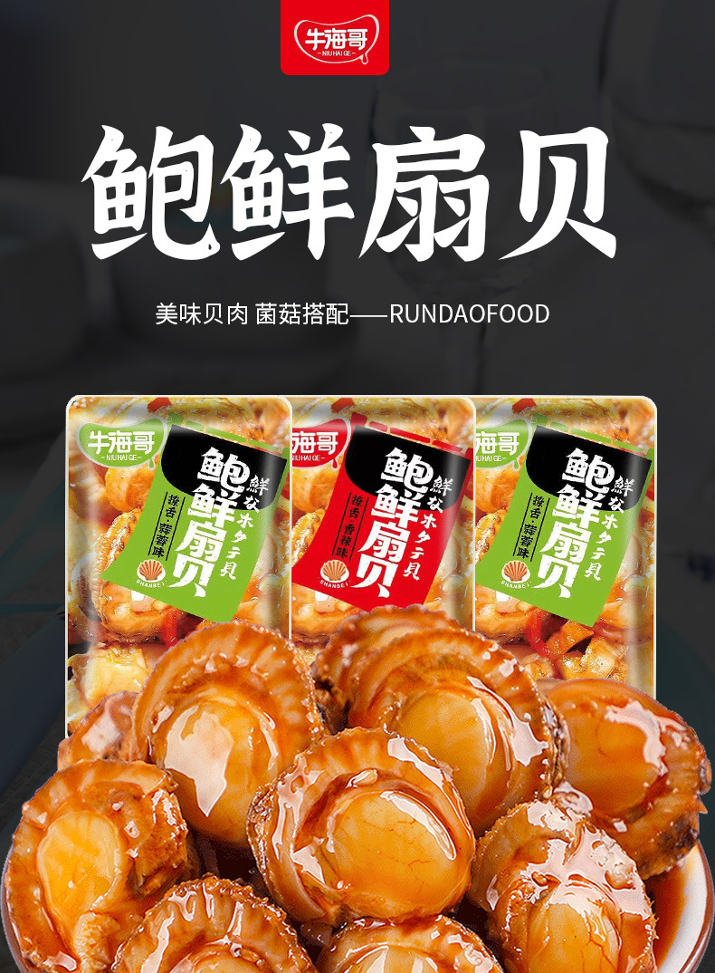 【新鲜美味!爆烧即食海鲜】甄选食材看得见的美味,口感爽滑,Q弹有嚼劲,扇贝蒜蓉香辣味贝类肉休闲解馋小零食L