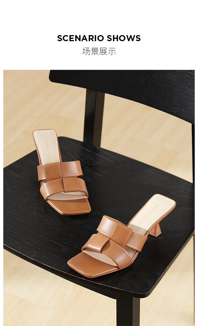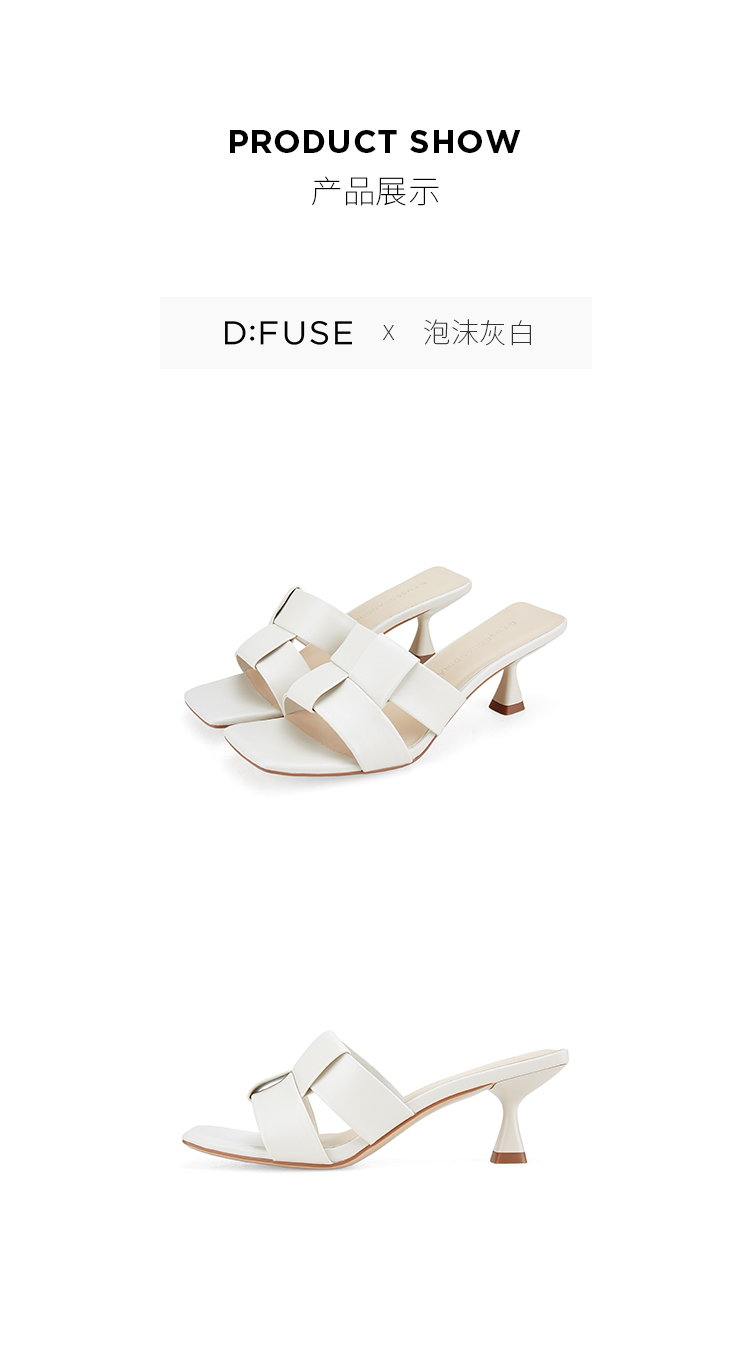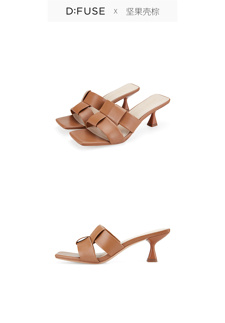 D:FUSE迪芙斯2024夏季新款精致编织艺术猫跟复古凉拖鞋DF42110172