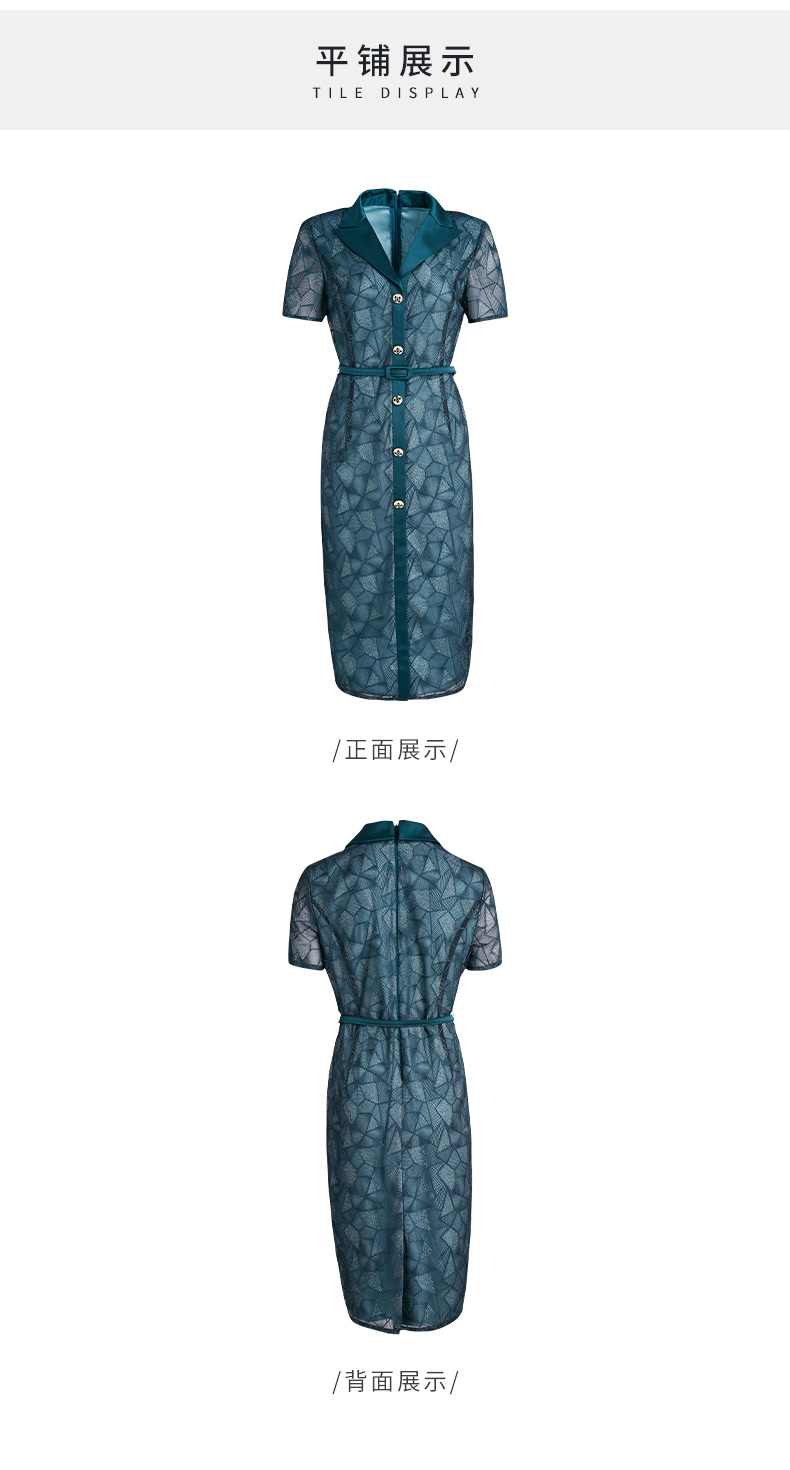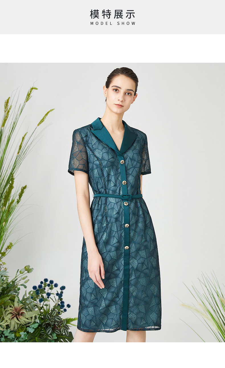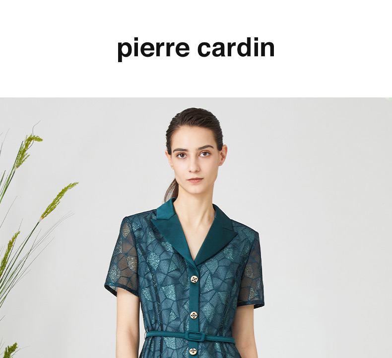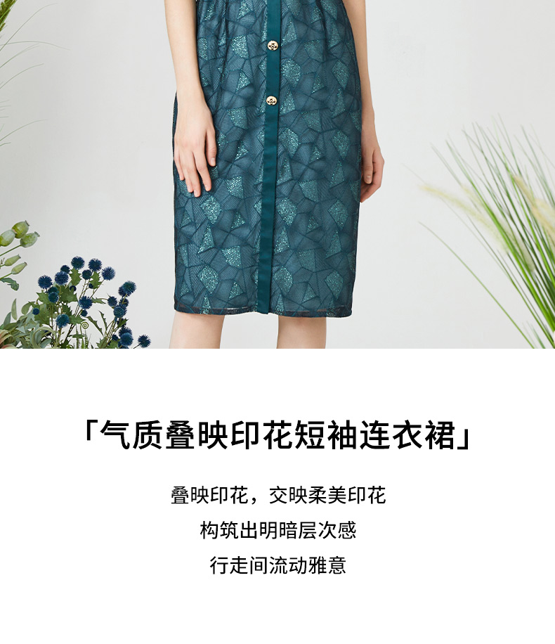 皮尔卡丹女装连衣裙气质印花短袖通勤收腰气质A字裙P3222D3115G2