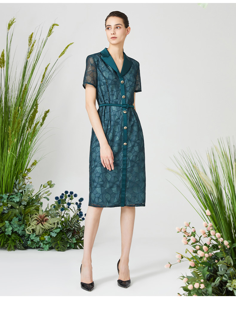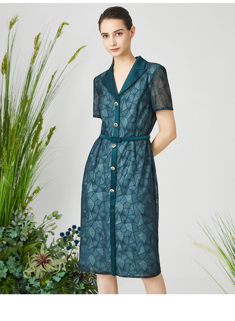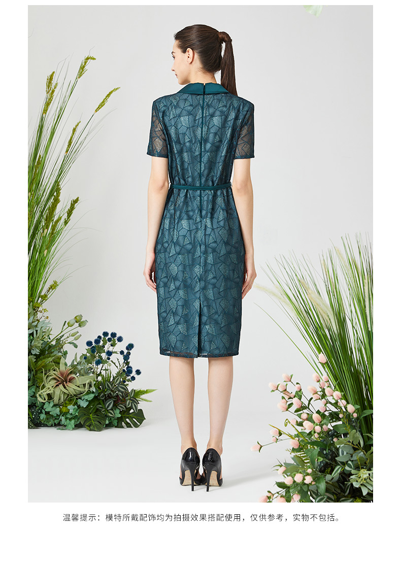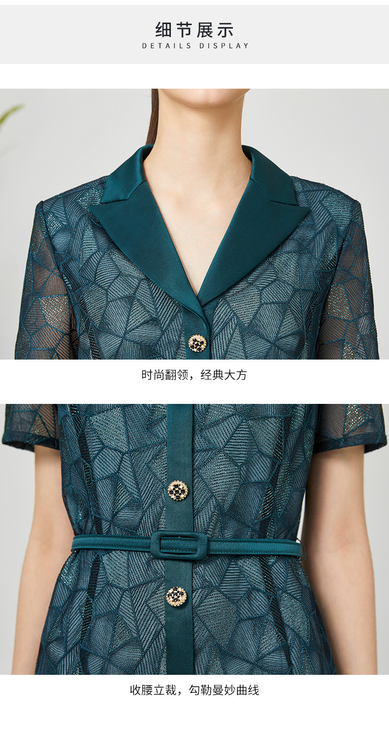 皮尔卡丹女装连衣裙气质印花短袖通勤收腰气质A字裙P3222D3115G2
