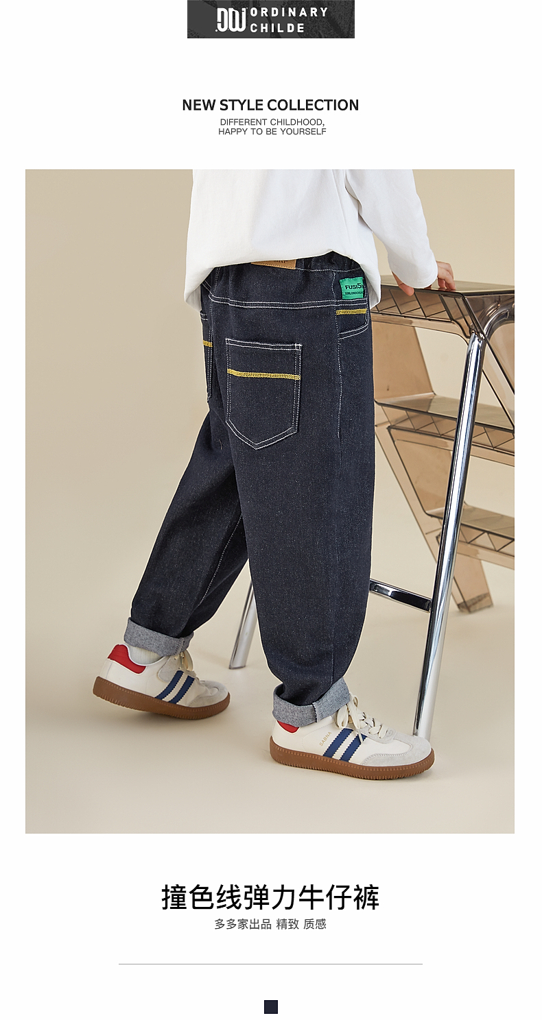 【团购价69.9元】多多家男童牛仔裤春秋季2024新款撞色线儿童裤子弹力中大童长裤潮9204