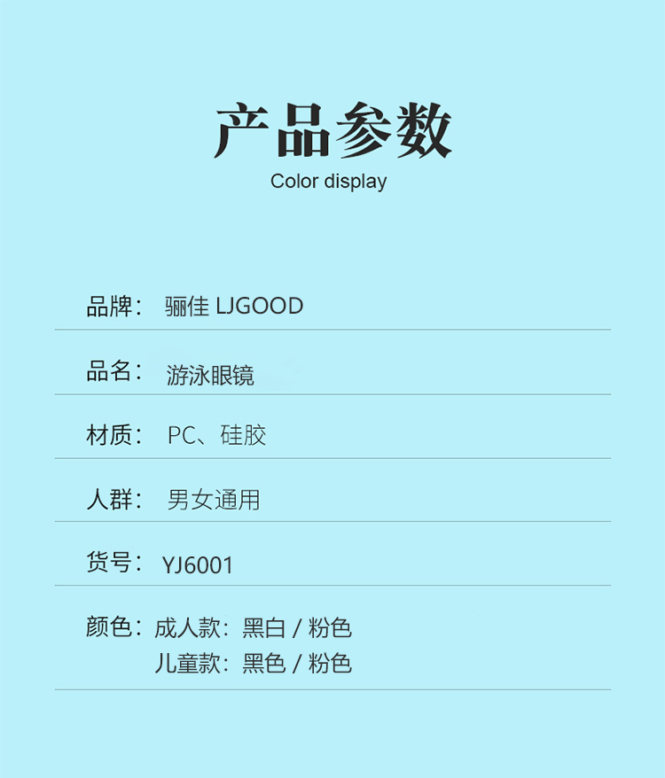 【LU】骊佳2021新款大视野防雾大框防水亲子款泳镜9002款/ 6001款 /泳帽8001款