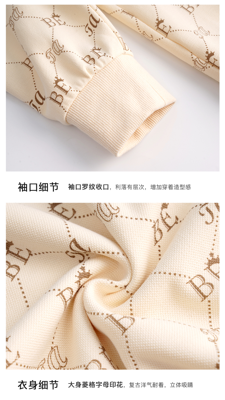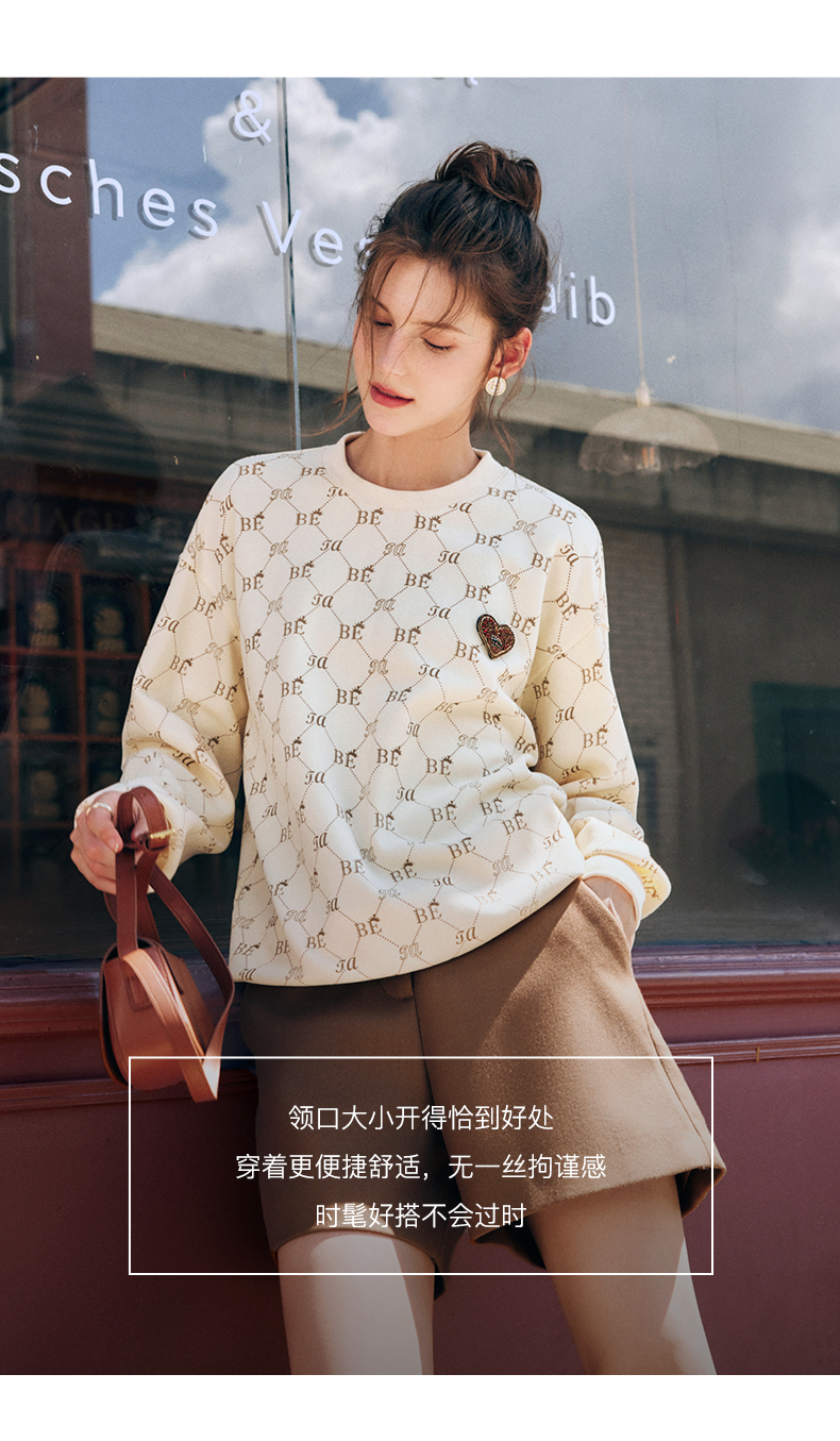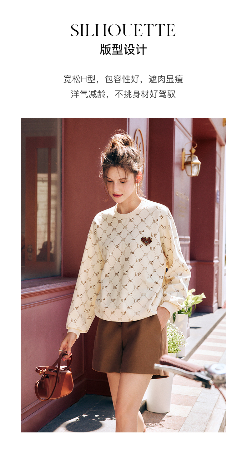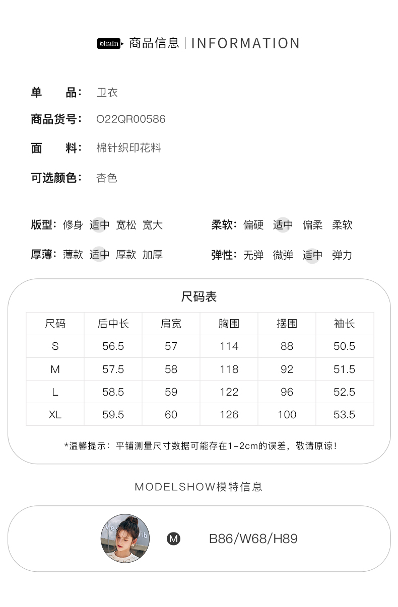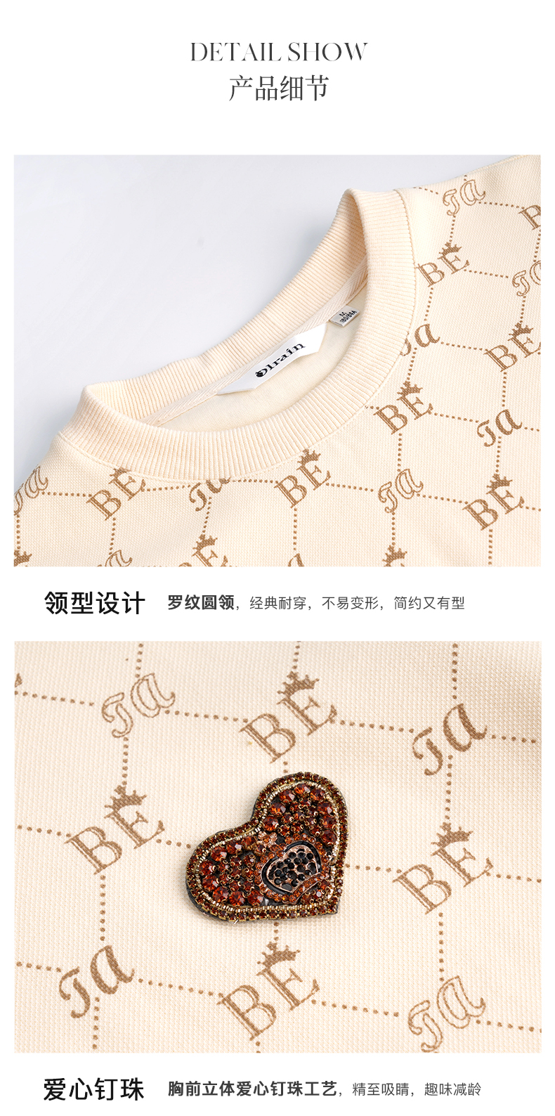 OLrain欧芮儿法式杏色卫衣女秋季2022年新款宽松珠地印花圆领上衣