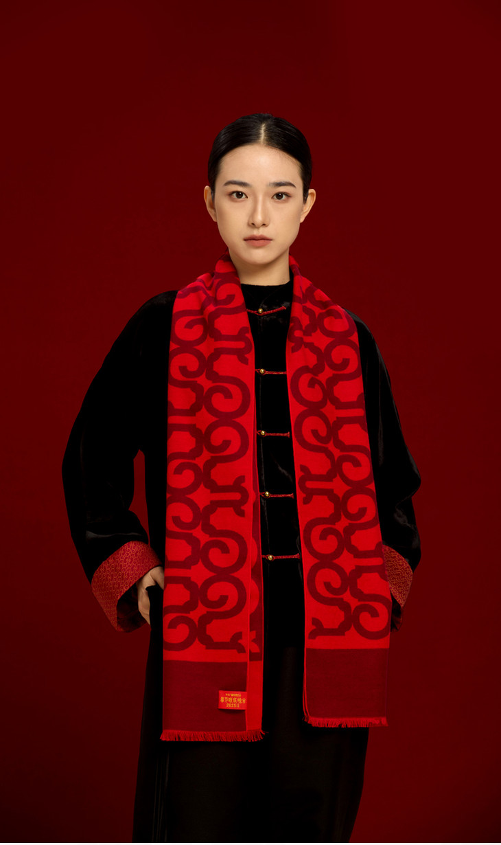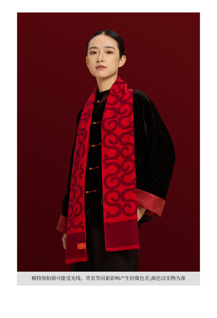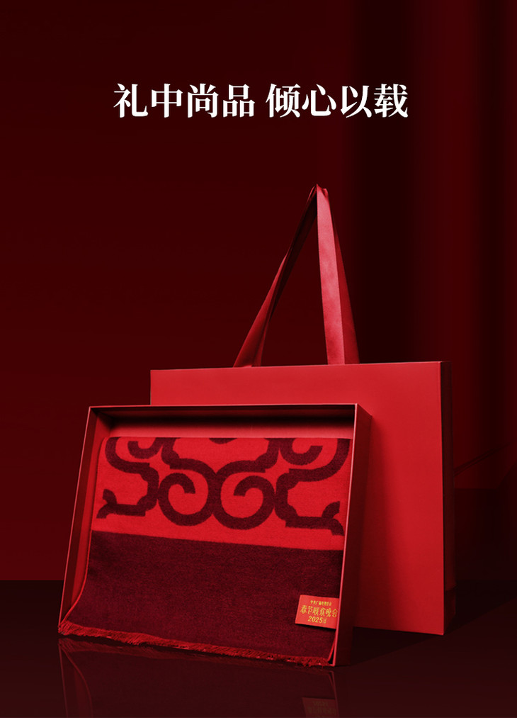 【央视2025年春晚围巾】礼盒装,真丝拉绒品质围巾,本命年大红中国红围巾,蛇年礼品