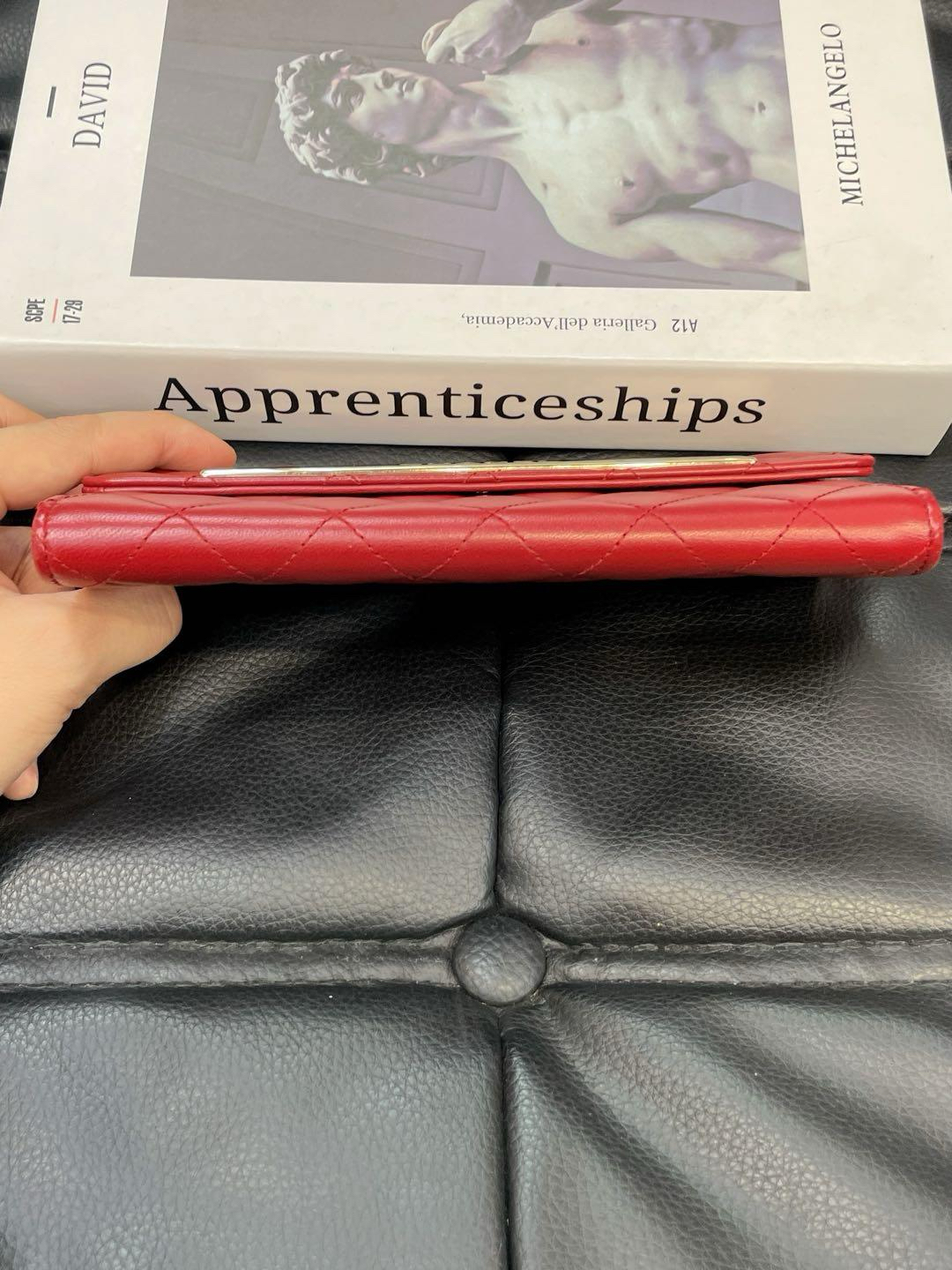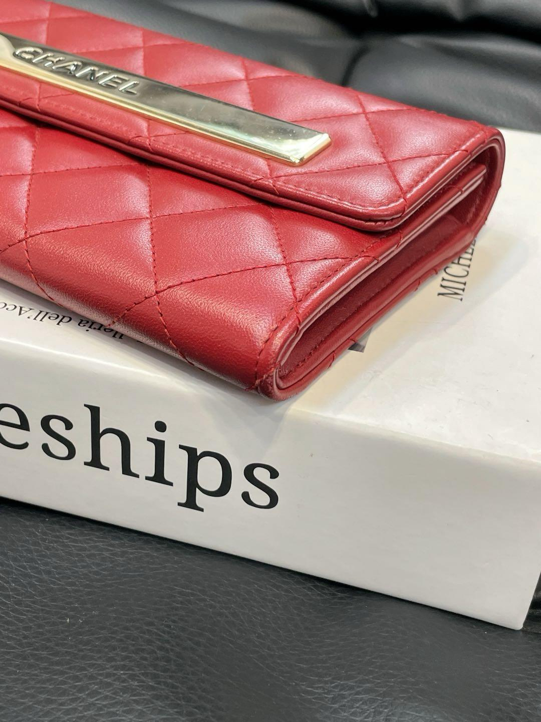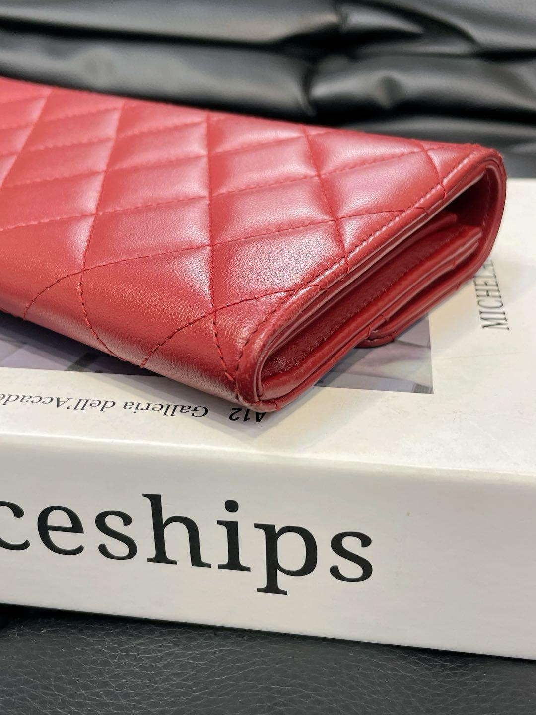 【商品详情】正品二手 Chanel 红色 羊皮 菱格纹 钱包🩸97新 19×10 配件:防尘袋。金属部分微微使用感 实用主义首选