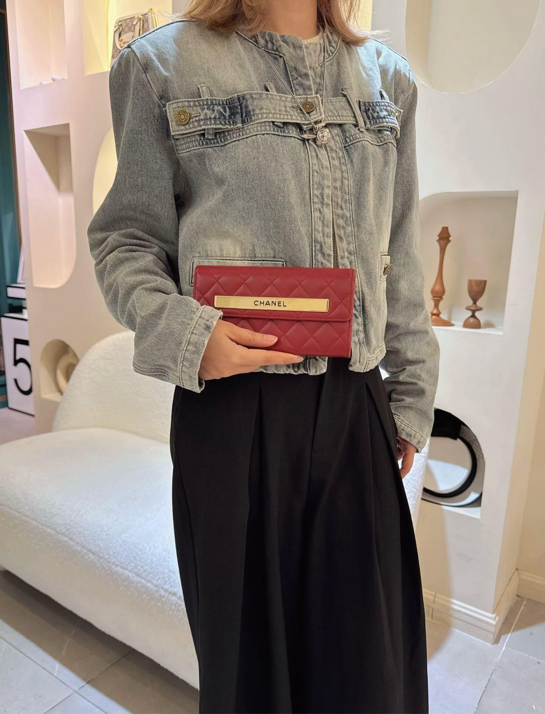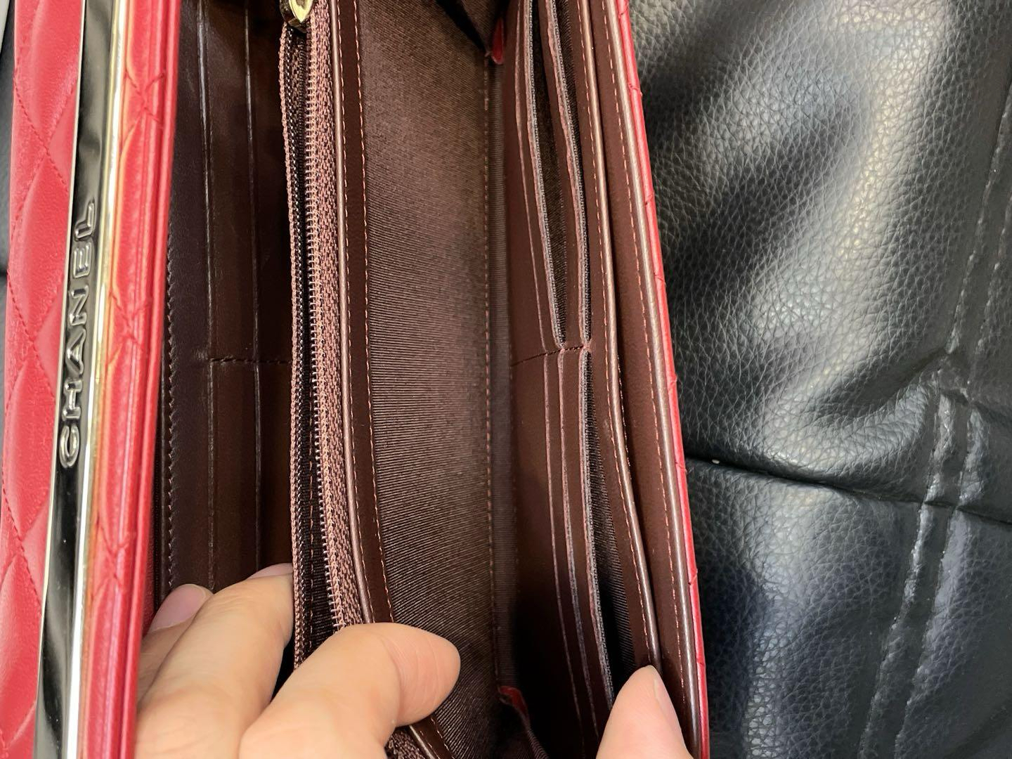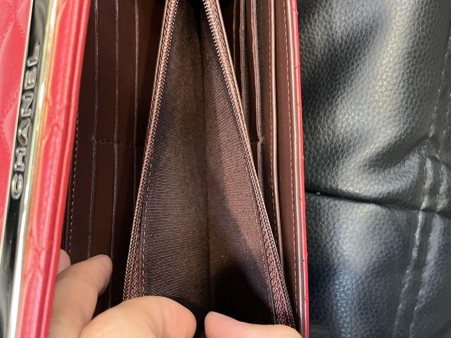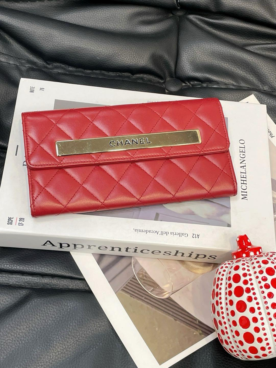 【商品详情】正品二手 Chanel 红色 羊皮 菱格纹 钱包🩸97新 19×10 配件:防尘袋。金属部分微微使用感 实用主义首选