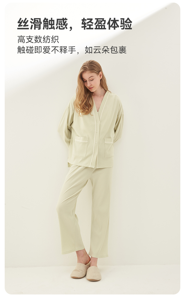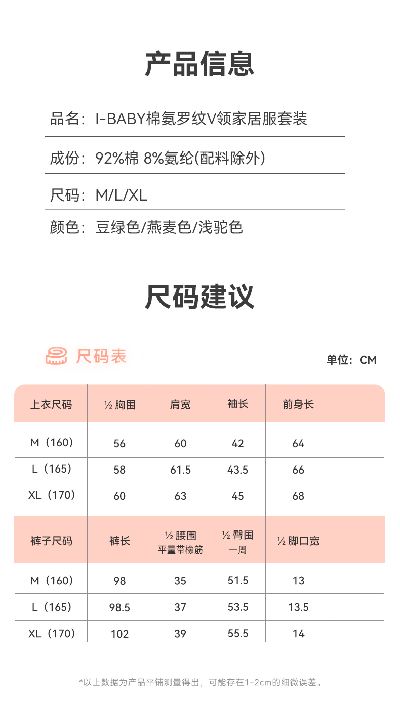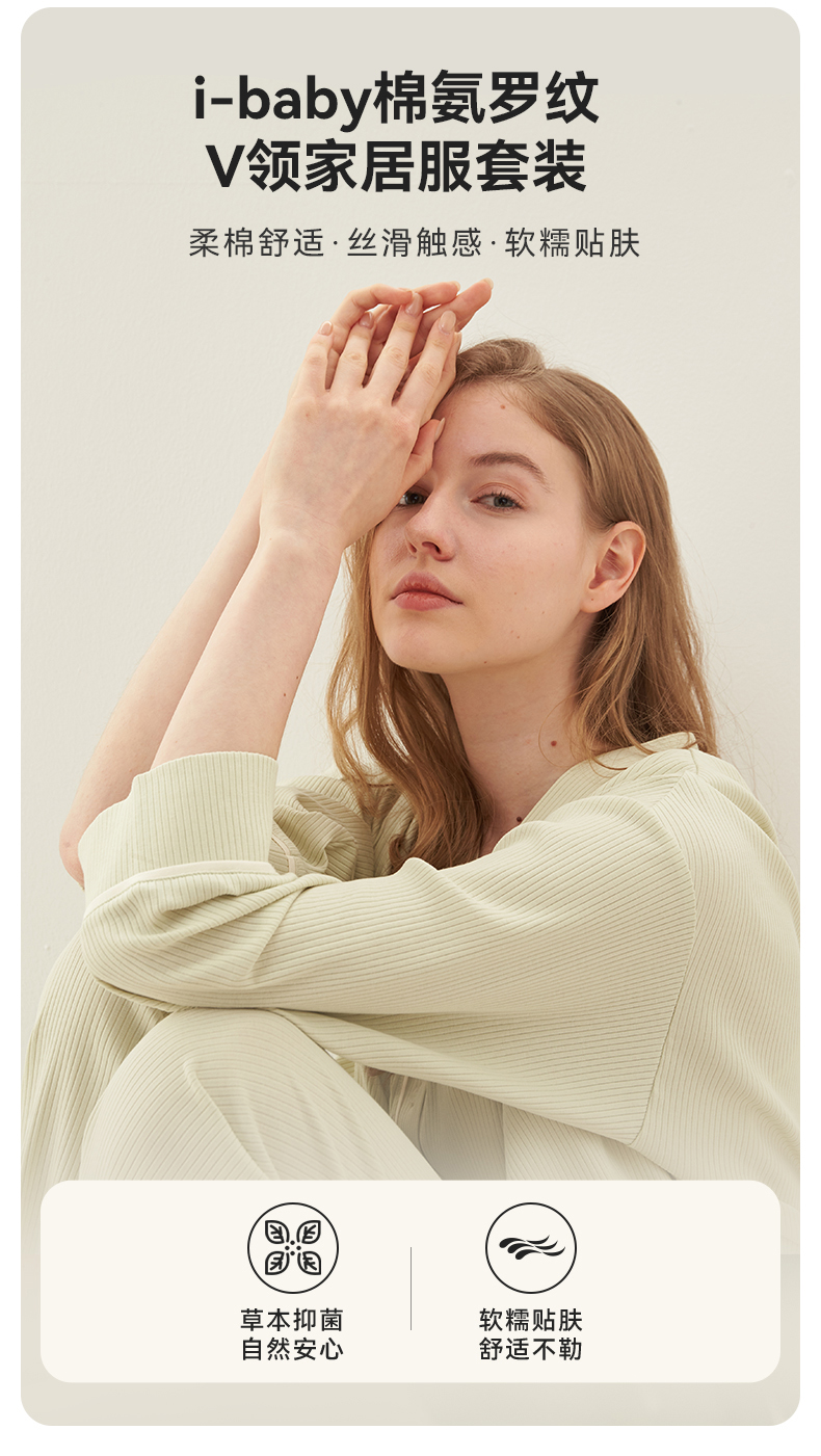【99元秒杀】2025秋冬新品 i-baby棉氨罗纹v领家居服套装