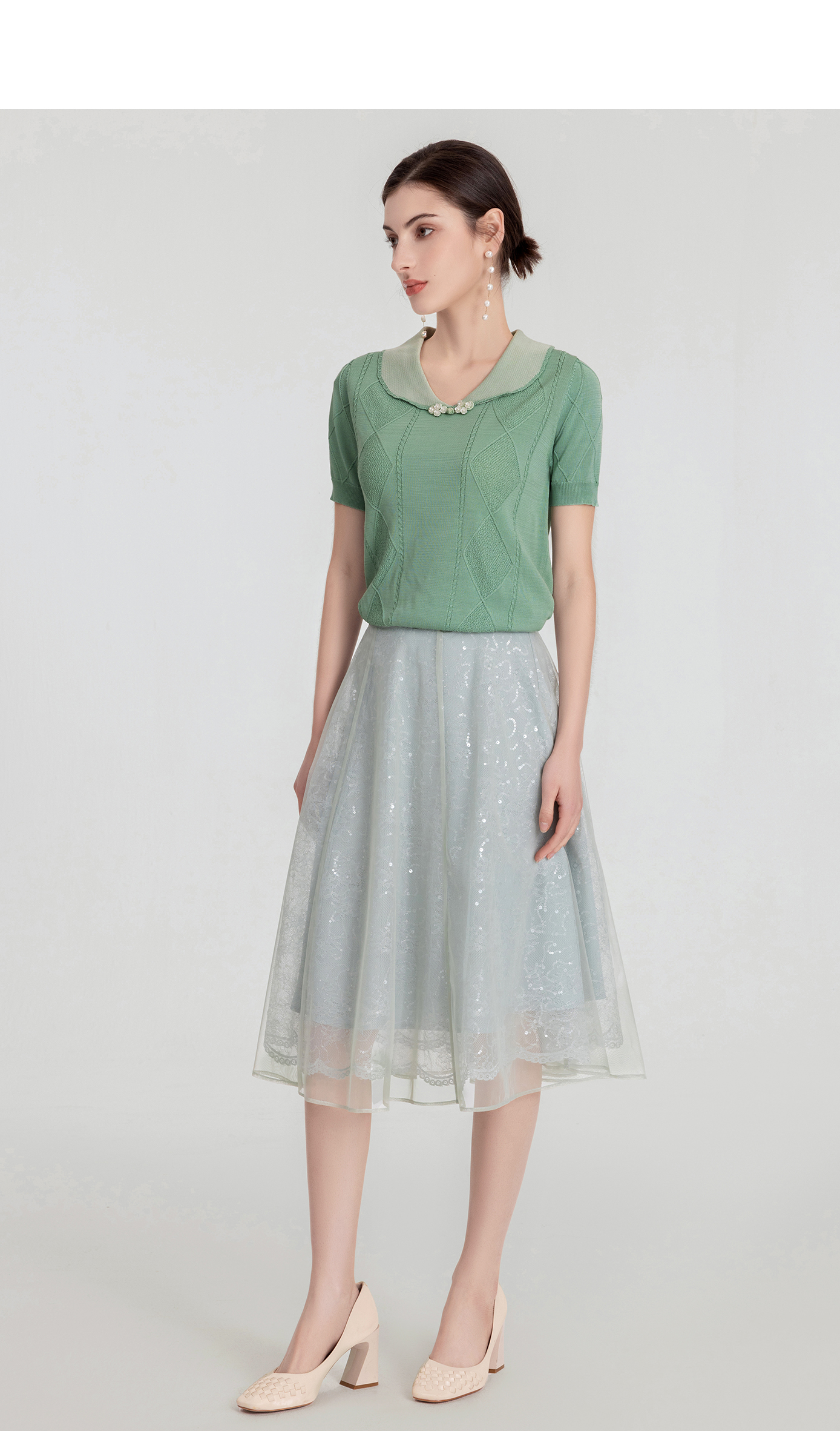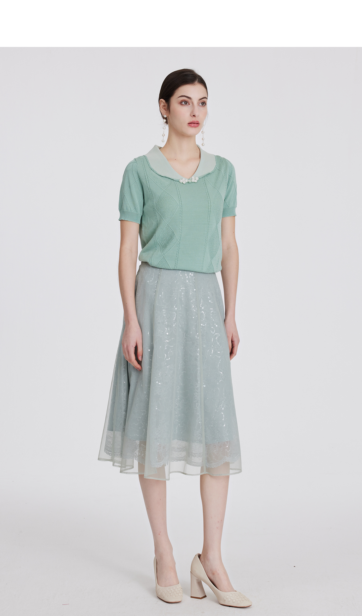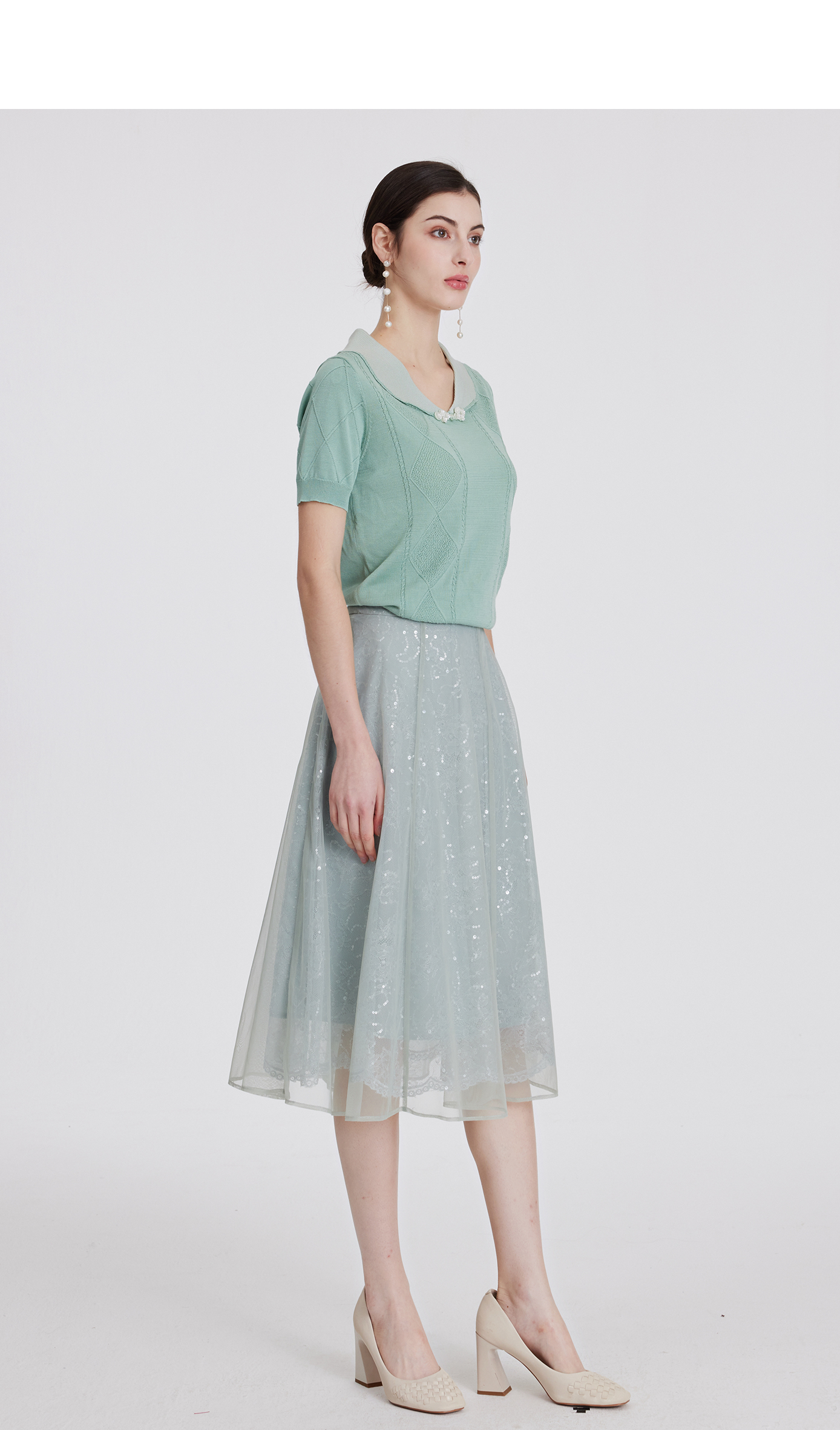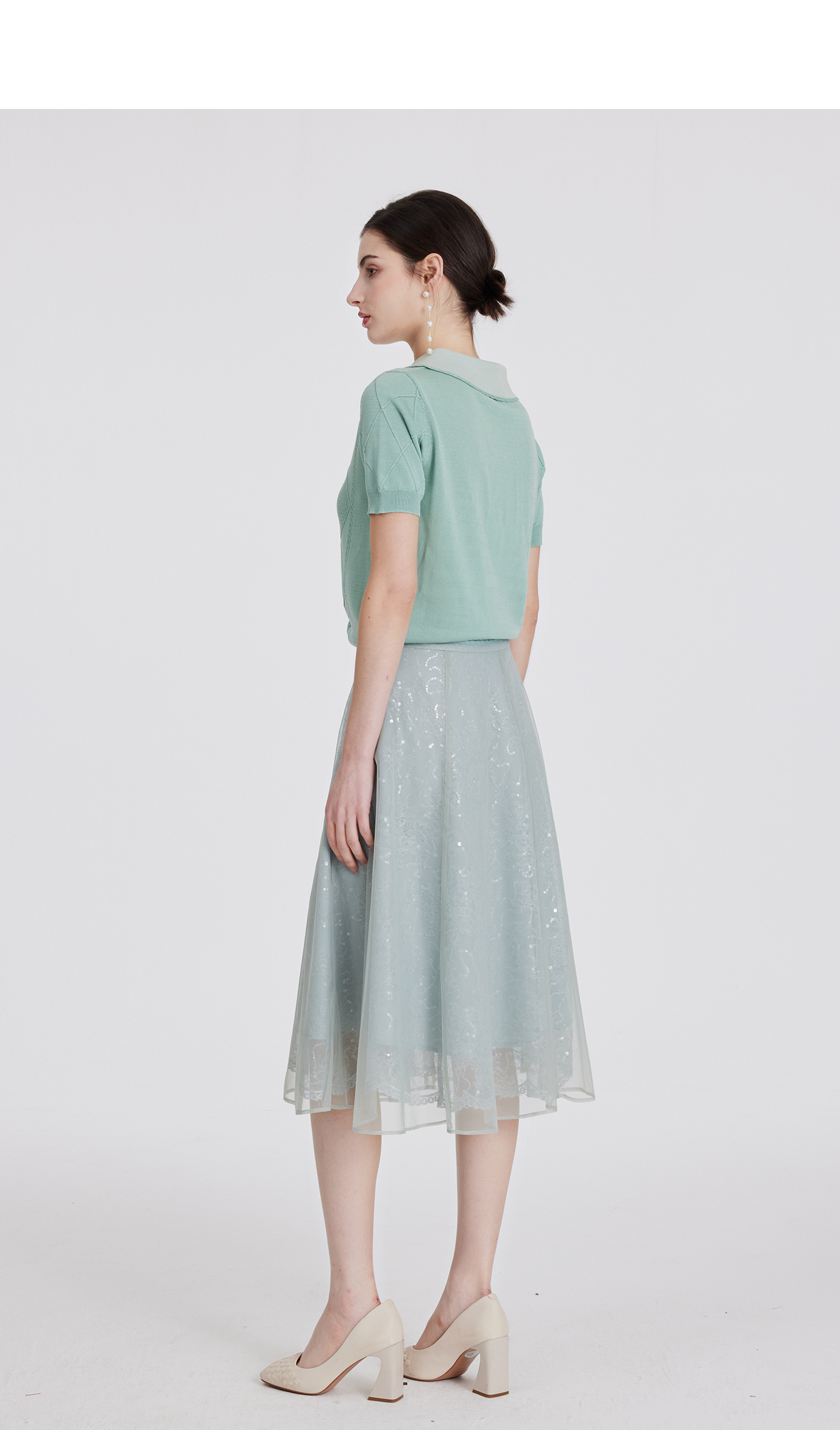 司歌蕾丝亮片伞裙仙气半裙C891222X