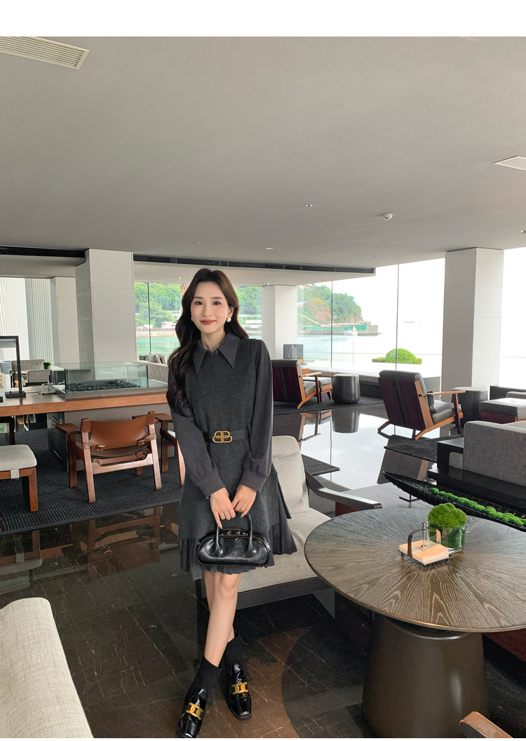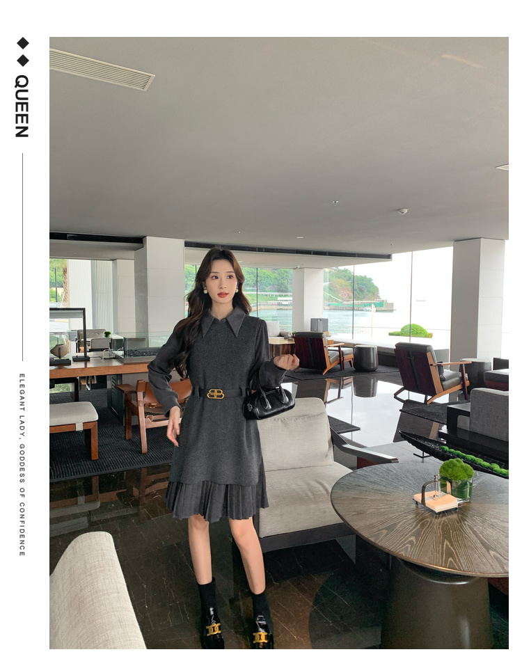 奢姿2025年秋冬新款大码女装背心连衣裙套装胖妹妹法式针织两件套9944955968
