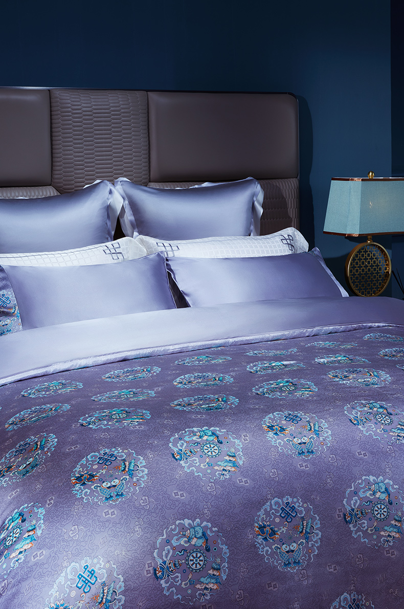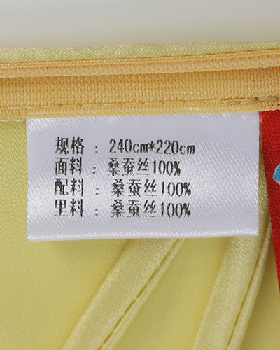 被面为印花软缎与素色软缎拼接,被里为素色软缎,触感柔软顺滑。