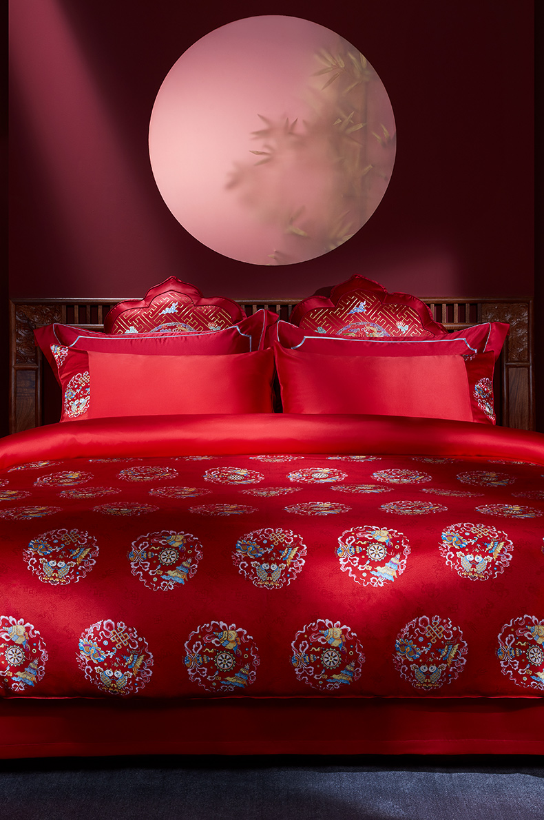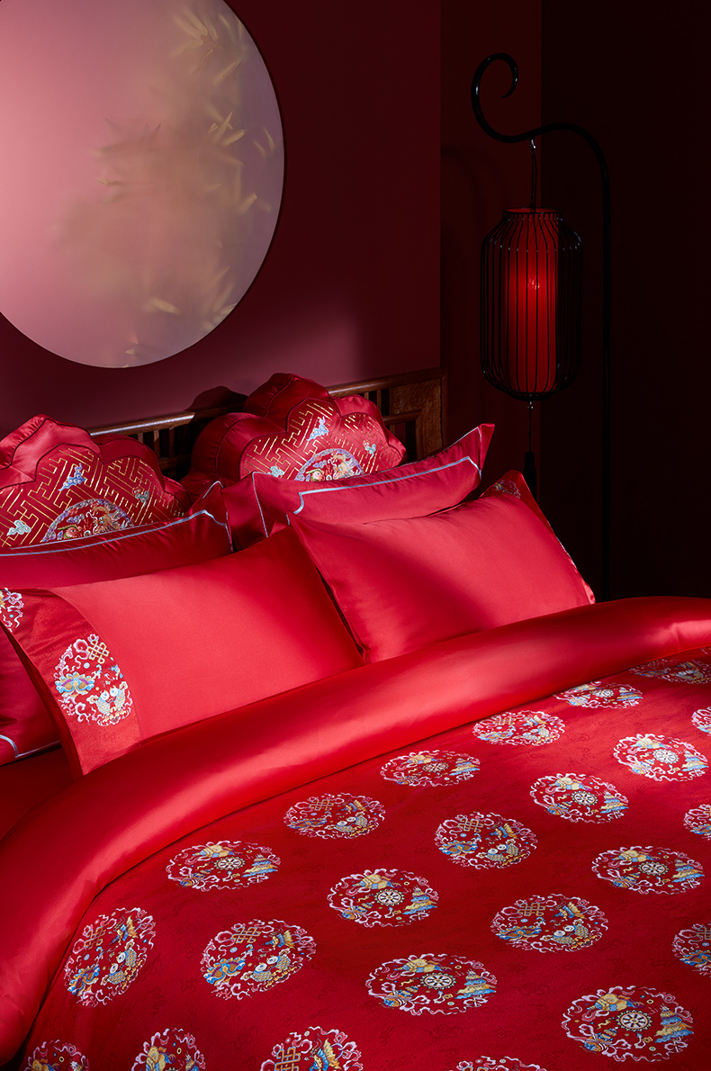 被子、枕头四周采用粗细不同的滚边工艺,既能增加细节美感,又能彰显产品的精良工艺。