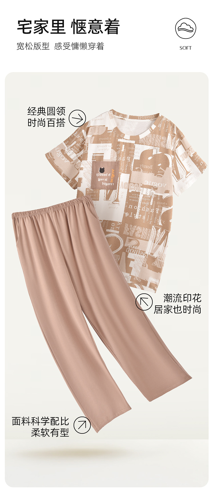 睡衣纯棉时尚印花休闲短袖长裤薄款可外穿家居服套装男女春夏情侣新款JJT9940