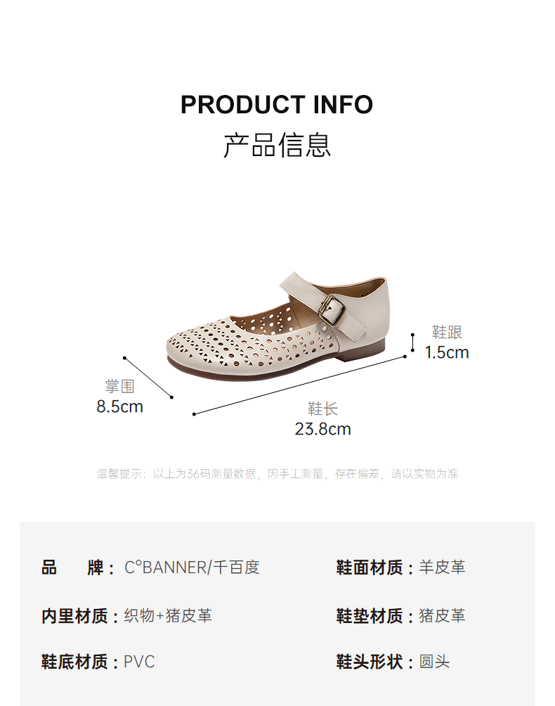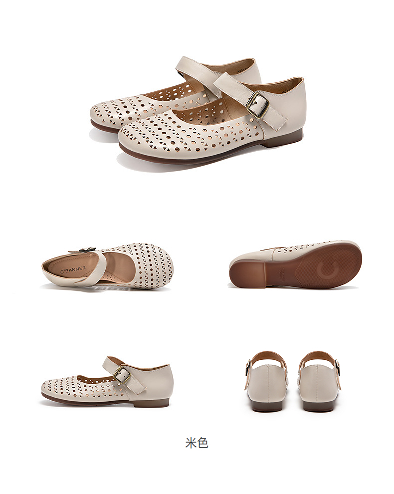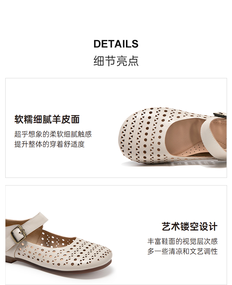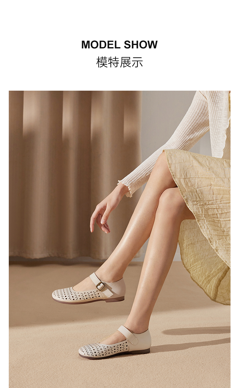 千百度羊皮镂空玛丽珍鞋女低跟T字鞋浅口单鞋通勤A25184604