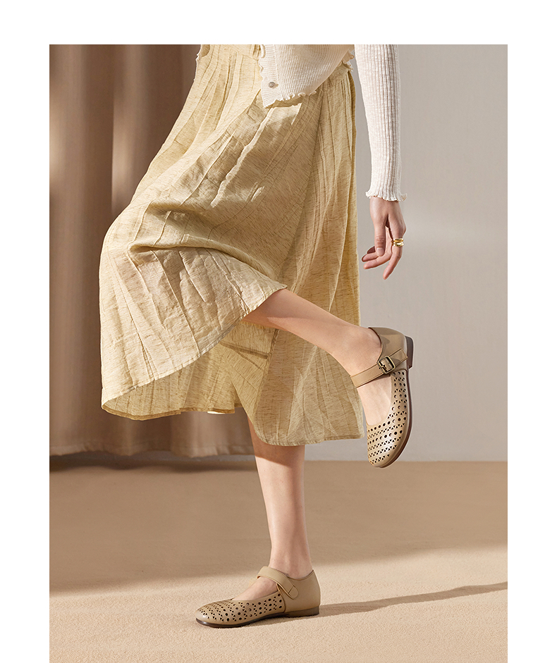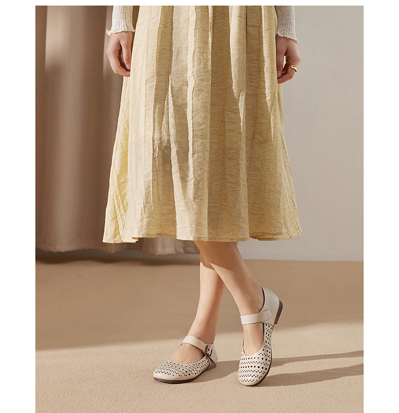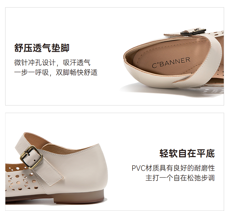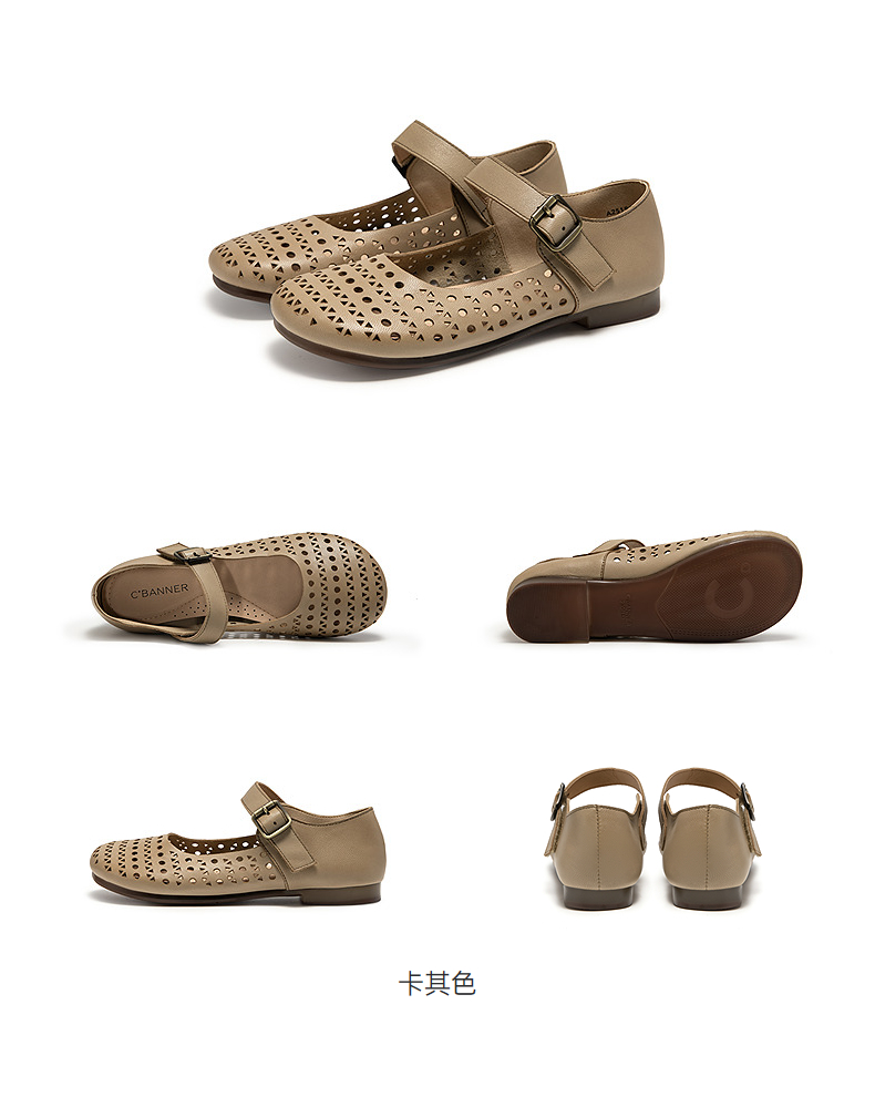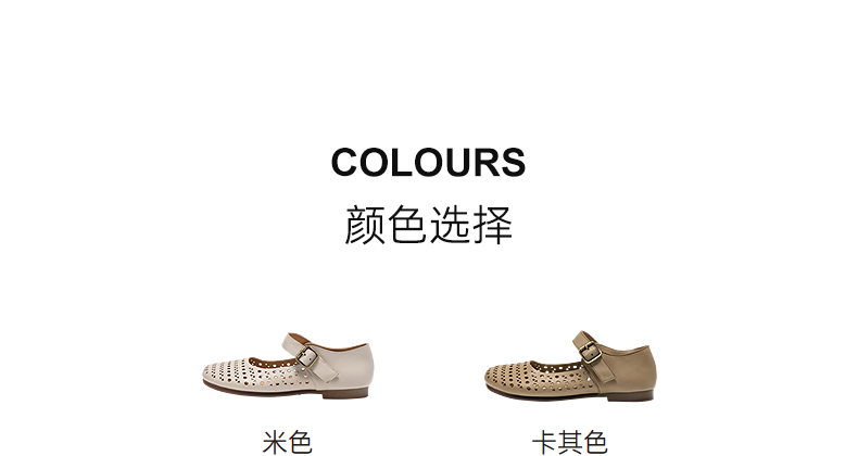 千百度羊皮镂空玛丽珍鞋女低跟T字鞋浅口单鞋通勤A25184604