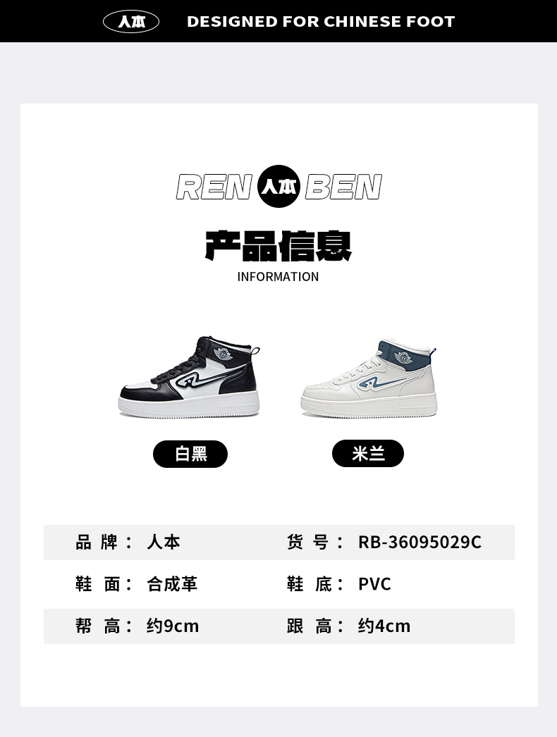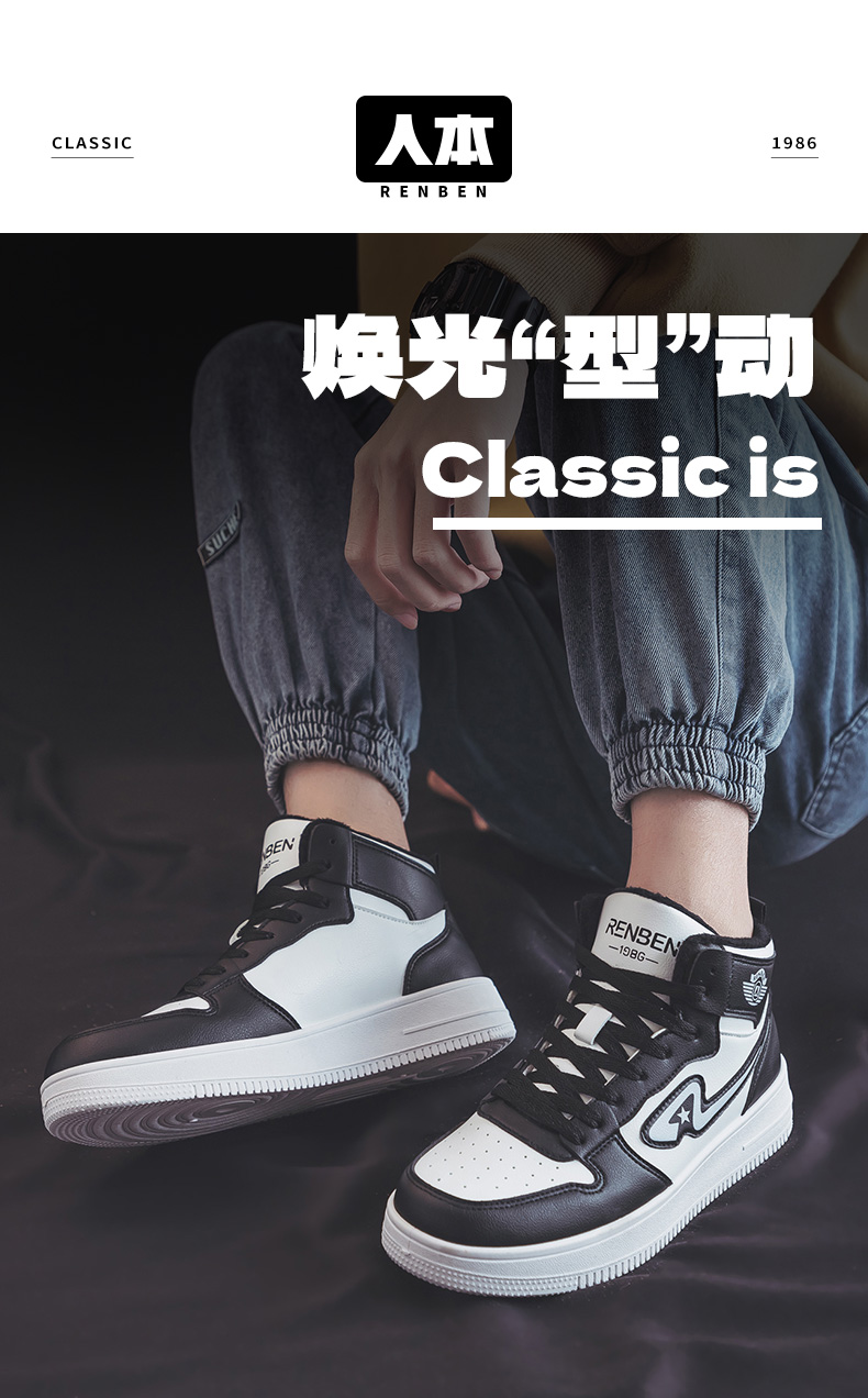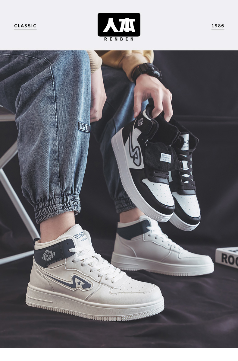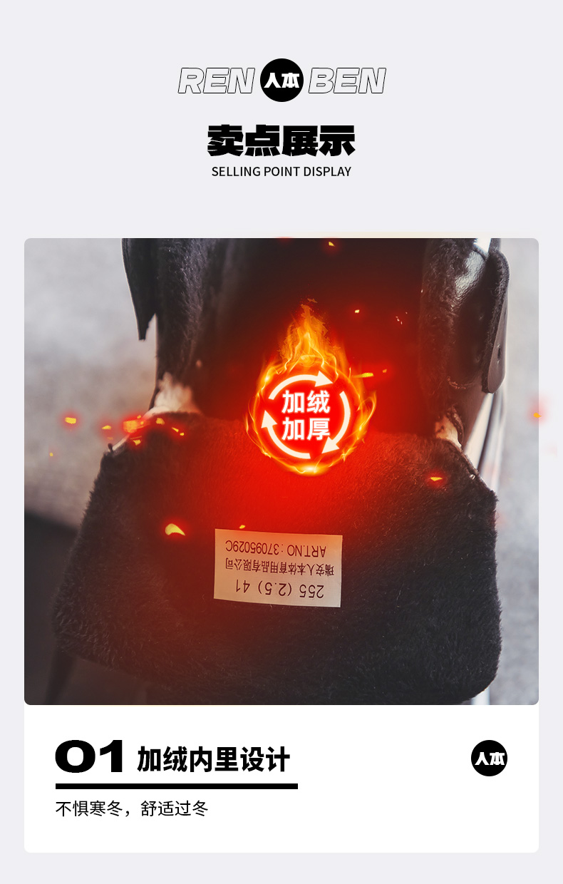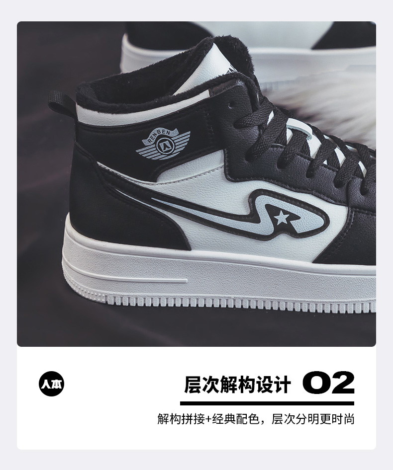 【分销】人本 二棉鞋男款加绒加厚保暖男鞋厚底增高外穿高帮鞋 37095029C