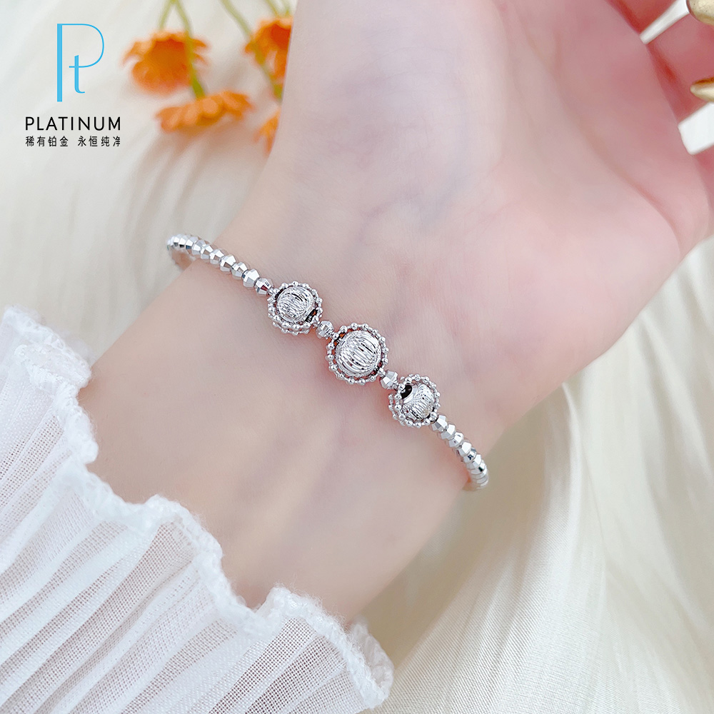 【限时8.8折】PT950 【国际铂金协会】铂金空心串珠开口调节手镯(BSZ00173)预售产品下单后不退款不退货不换货不补差价)预售产品下单后不退款不退货不换货不补差价