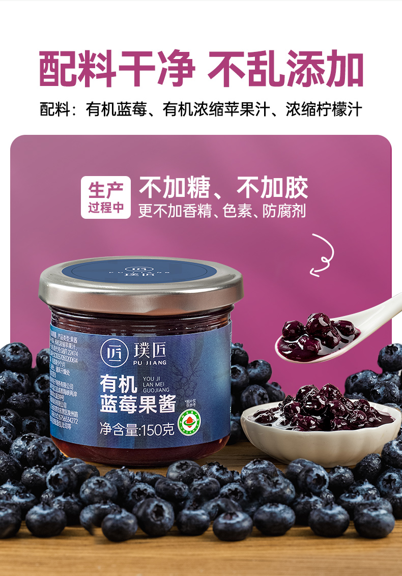 璞匠有机蓝莓果酱官方旗舰店烘焙蓝莓酱家用早餐面包吐司涂抹酱