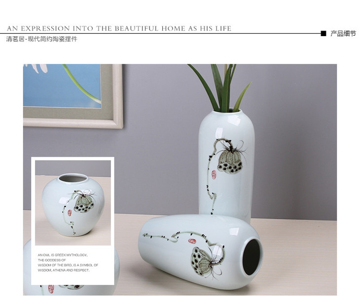 【陶瓷花瓶】景德镇陶瓷手绘花瓶 简约现代客厅家居高温手绘青釉摆件组合