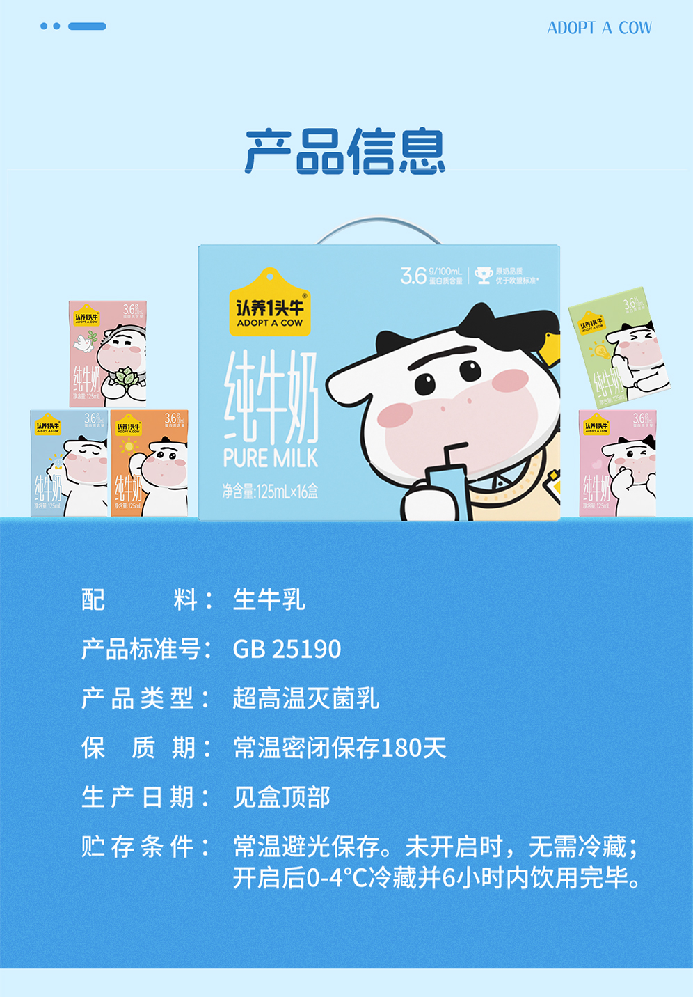 认养一头牛 纯牛奶一头联名款 125ml*16