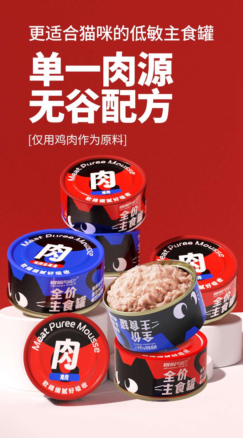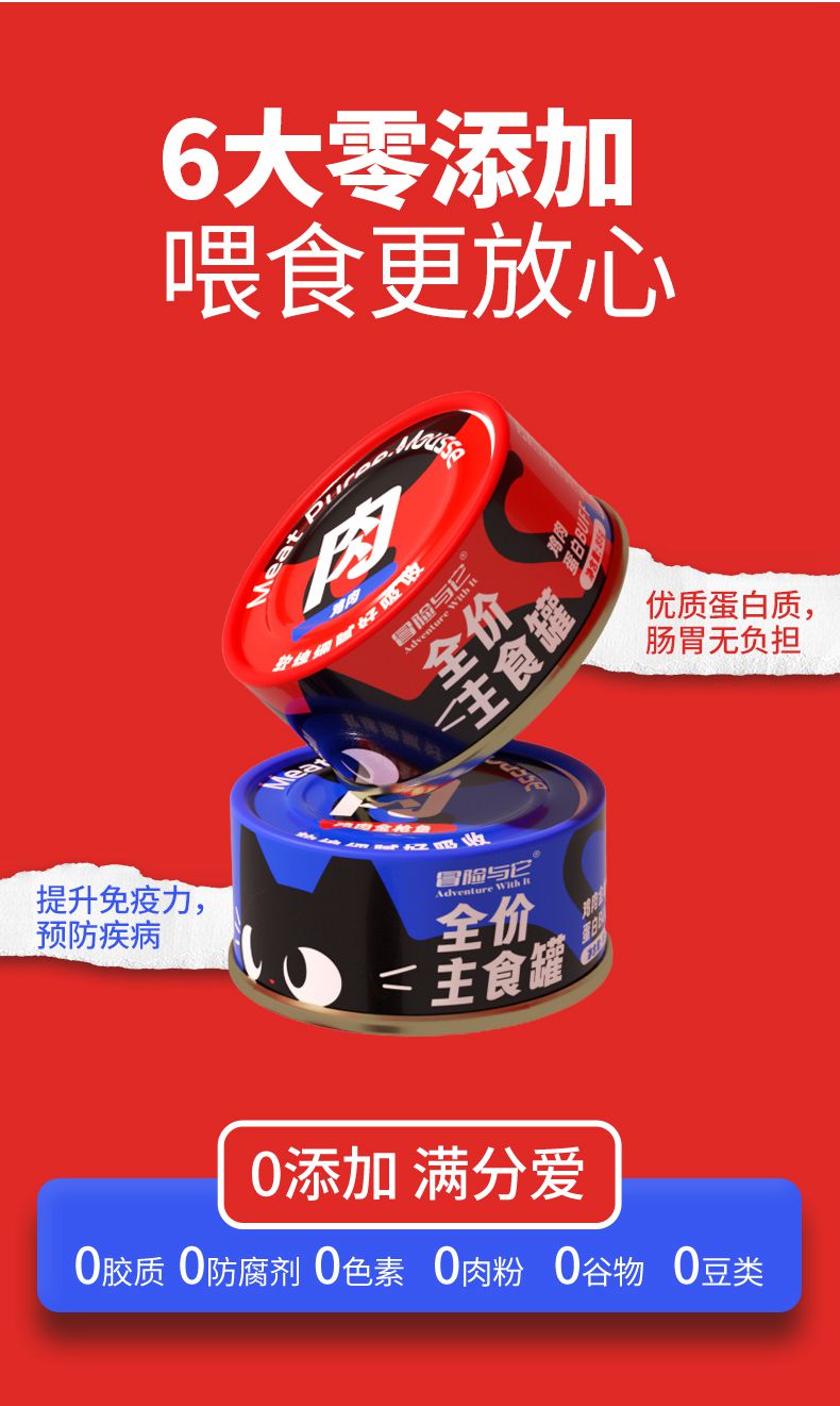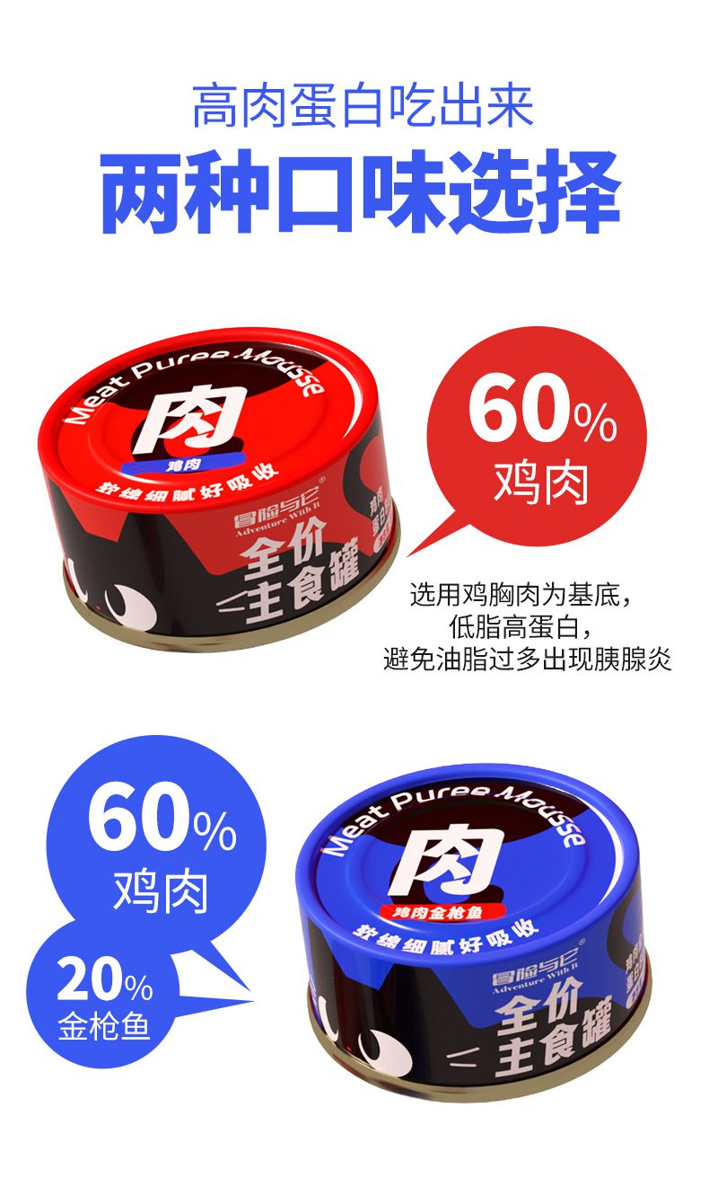 【单罐仅1.4元】冒险与它猫咪全价主食罐85g*24罐箱装 湿粮罐 高适口性 无谷配方 不吃包退!