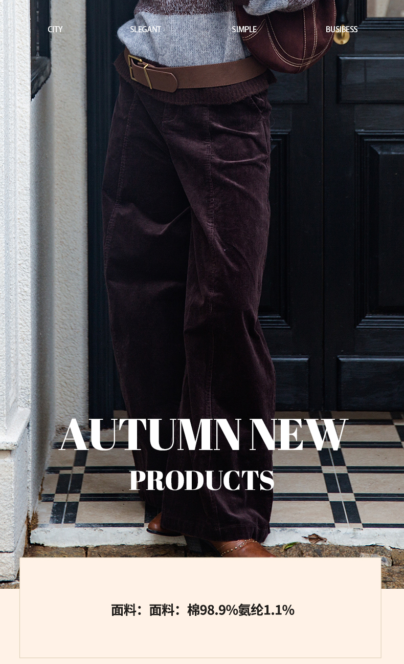 【门店同款】ENJOY冬季“暖冬知性”复古灯芯绒阔腿裤 167044671