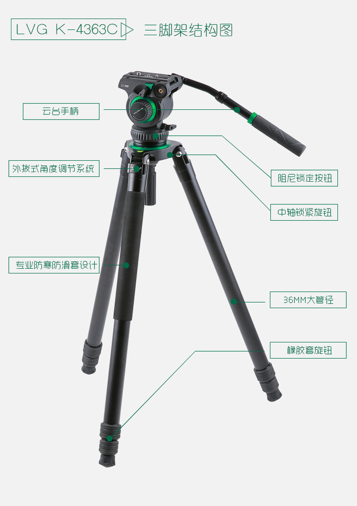 狼族优选丨LVG 打鸟专用 3节36mm大管径 单反适用 碳纤维摄像三脚架+云台套装