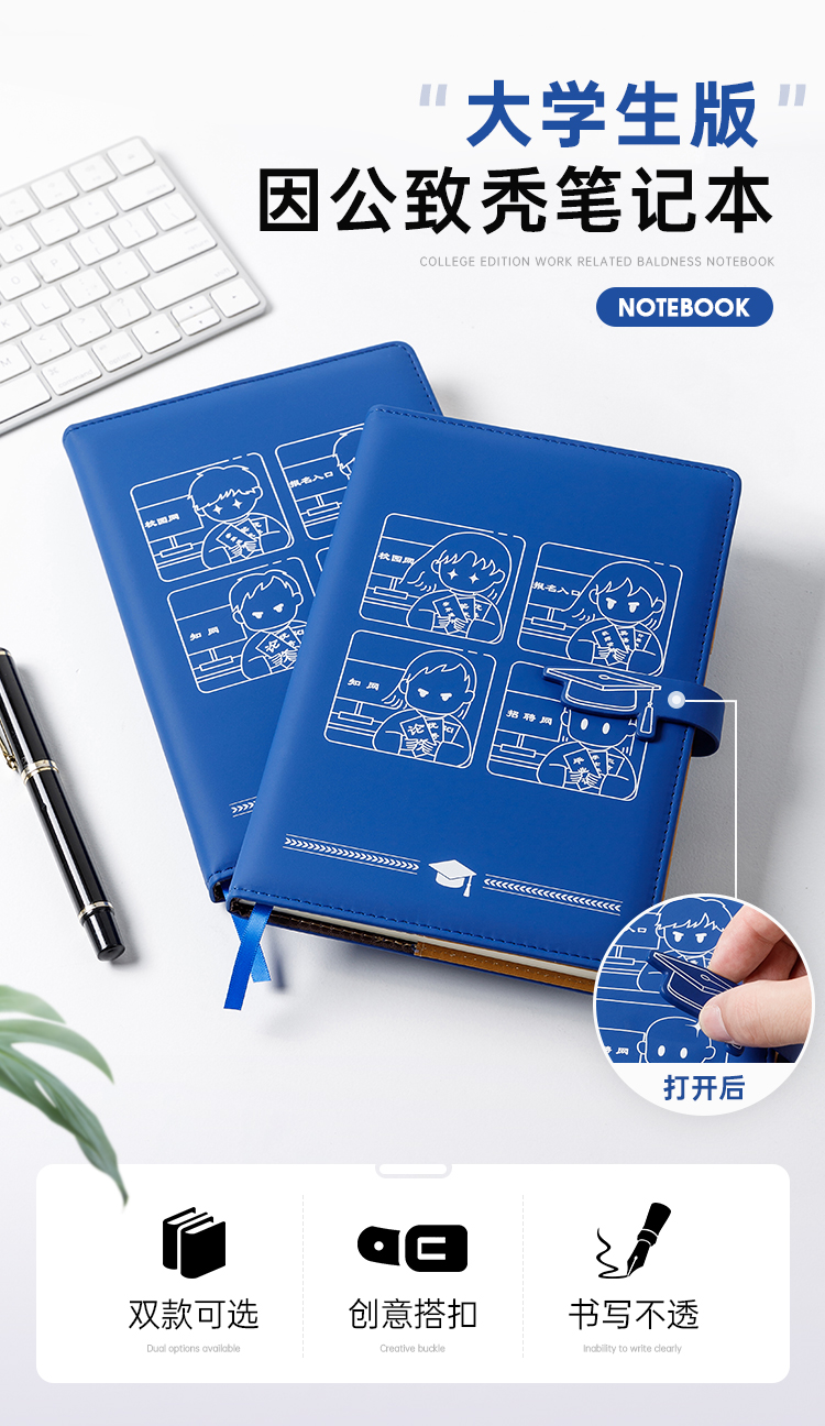 【实付满199送钥匙扣】【因公致秃大学生笔记本】PU材质记事本创意日记本