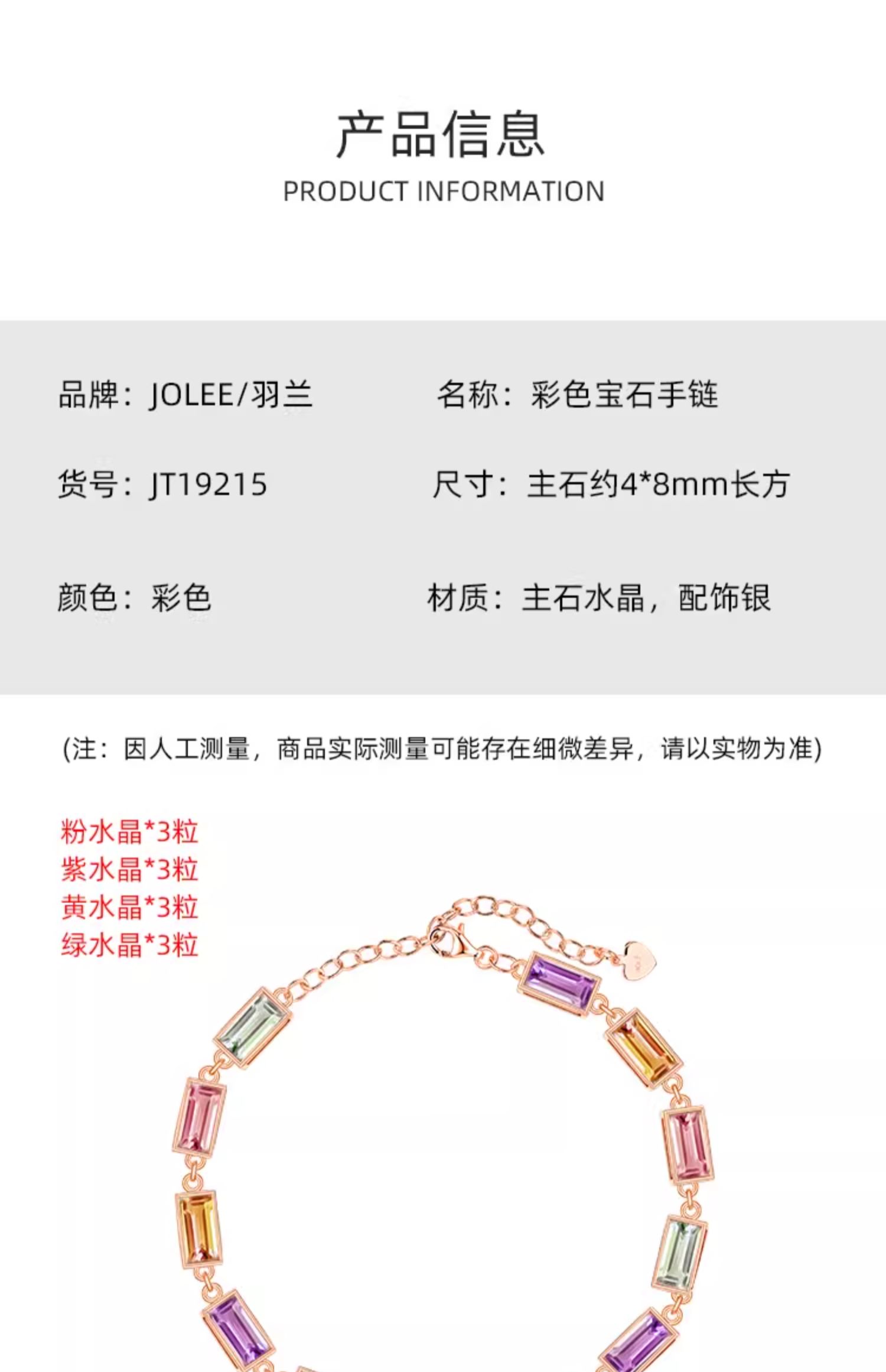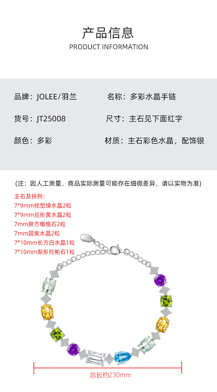 【JOLEE手链】 S925银 天然水晶 宝石 轻奢饰品 七夕送女生礼物