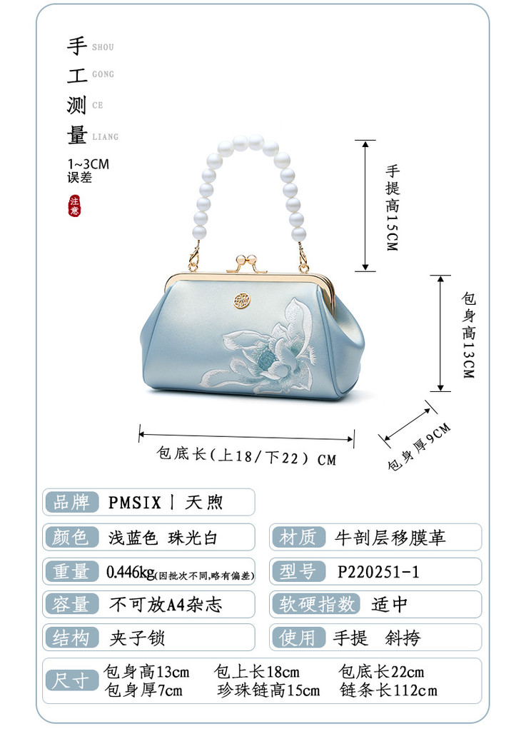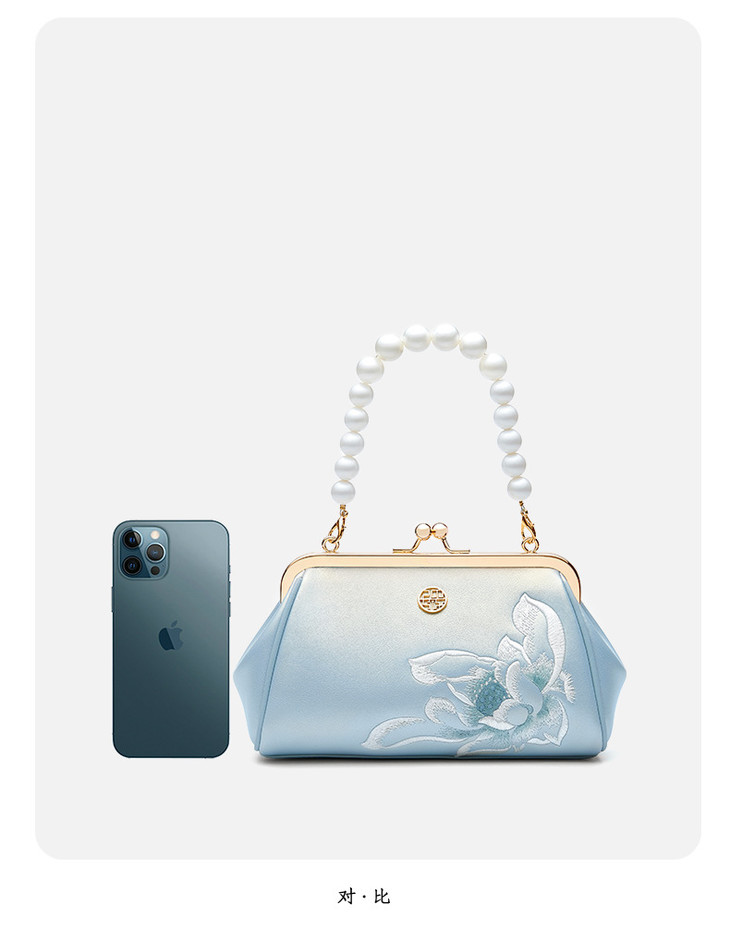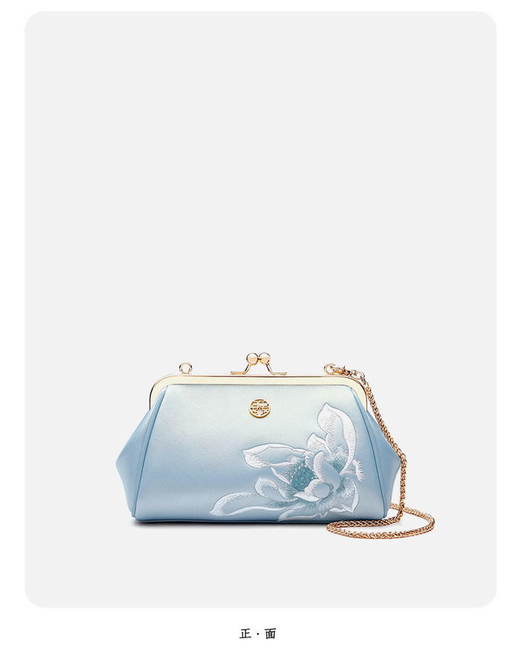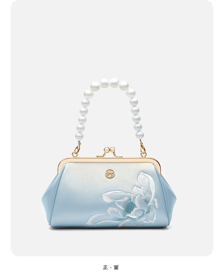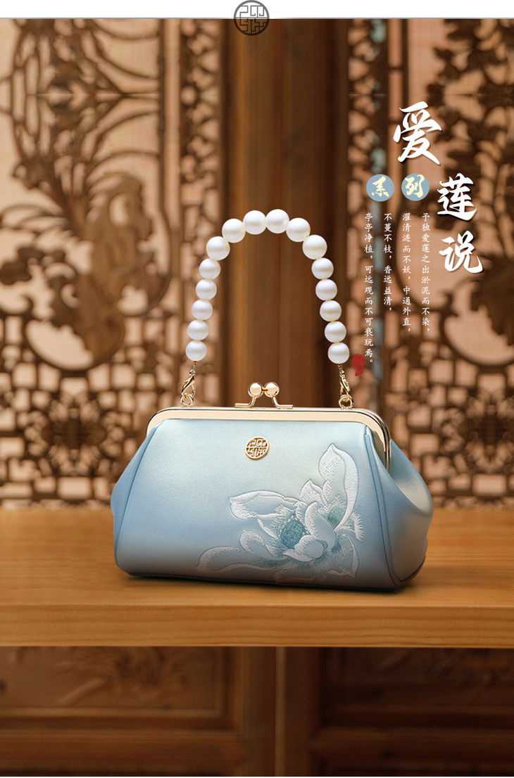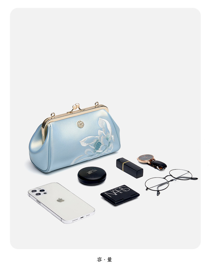 爱莲说新中式旗袍汉服手提单肩斜挎绣花牛皮小包P220251