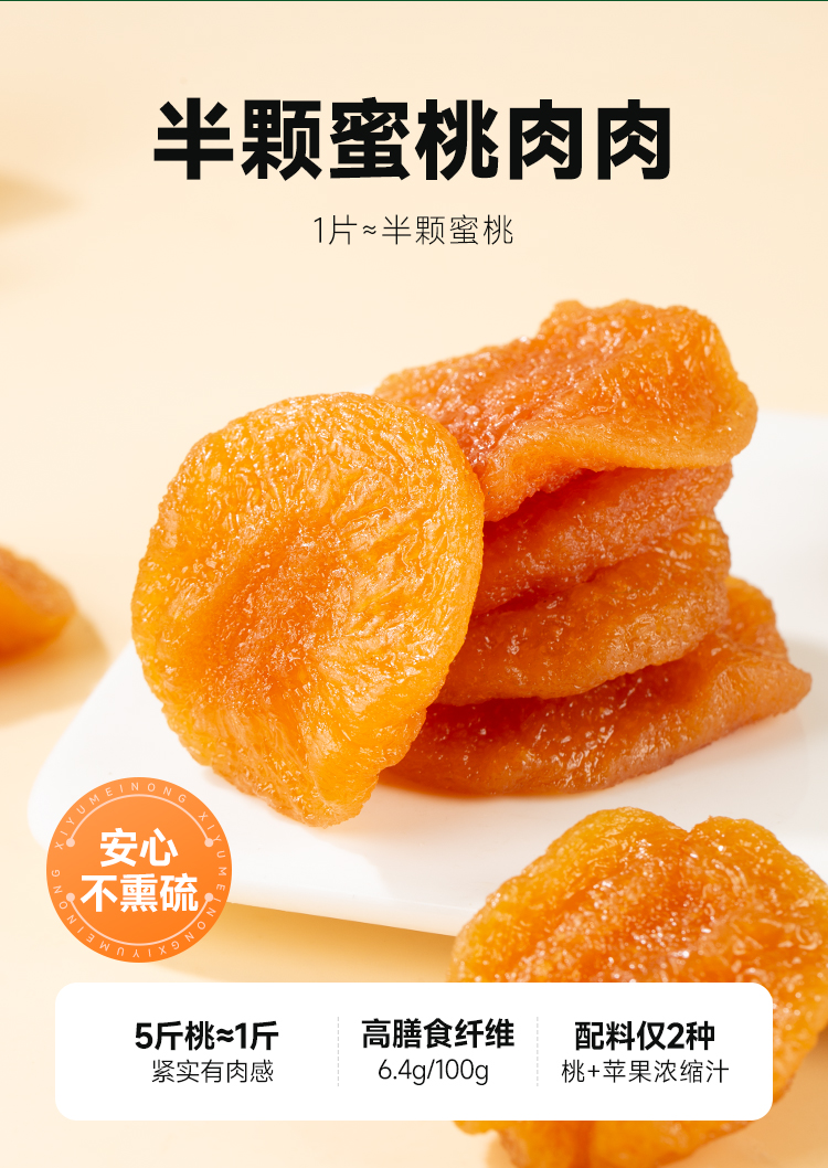 西域美农 半颗蜜桃肉肉 软糯清甜 真纯净 · 高纤维 · 真果肉型蜜桃果脯