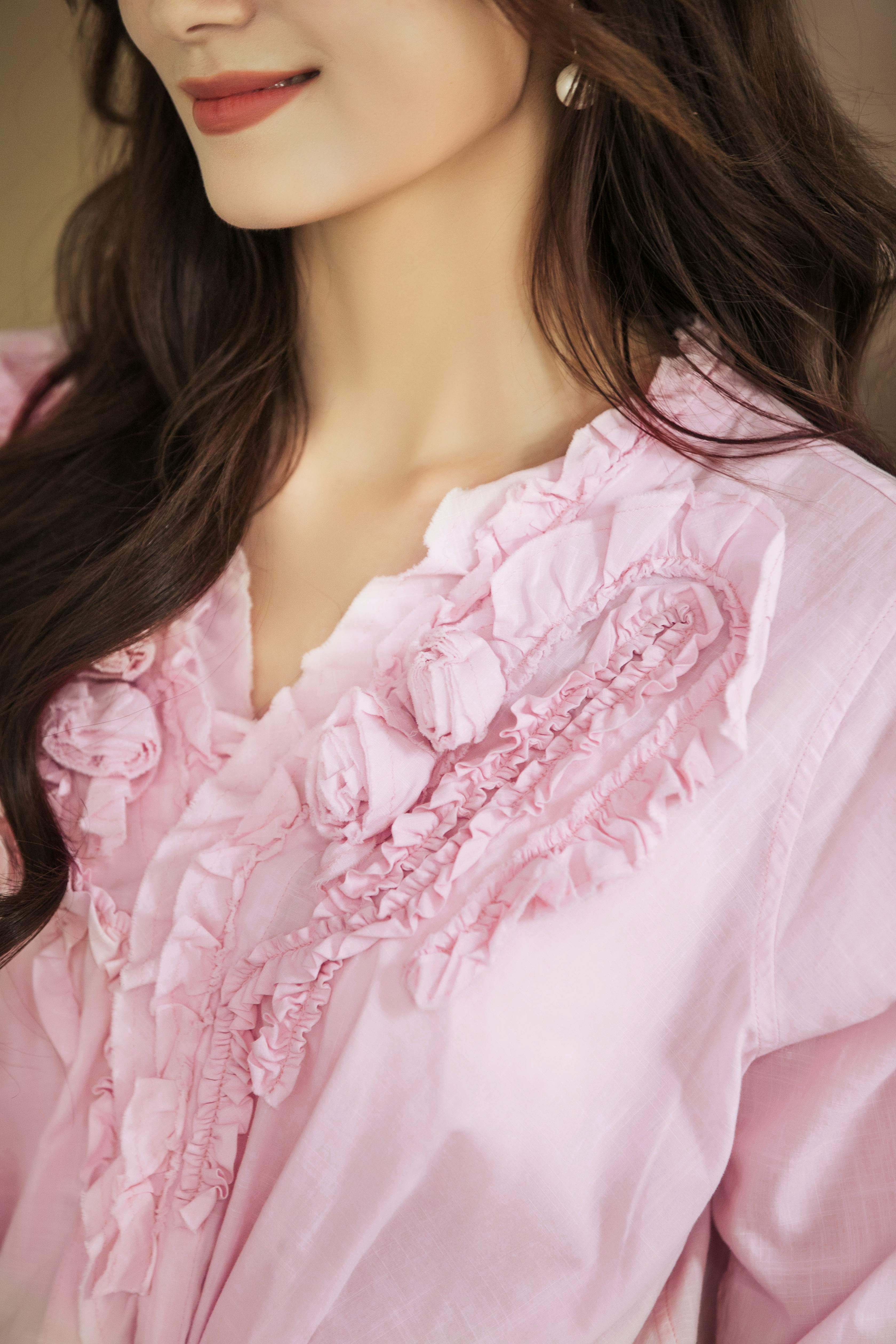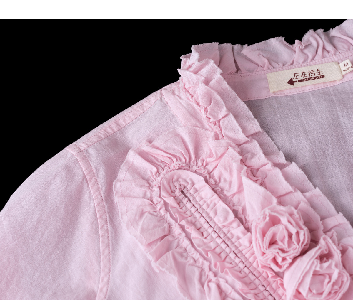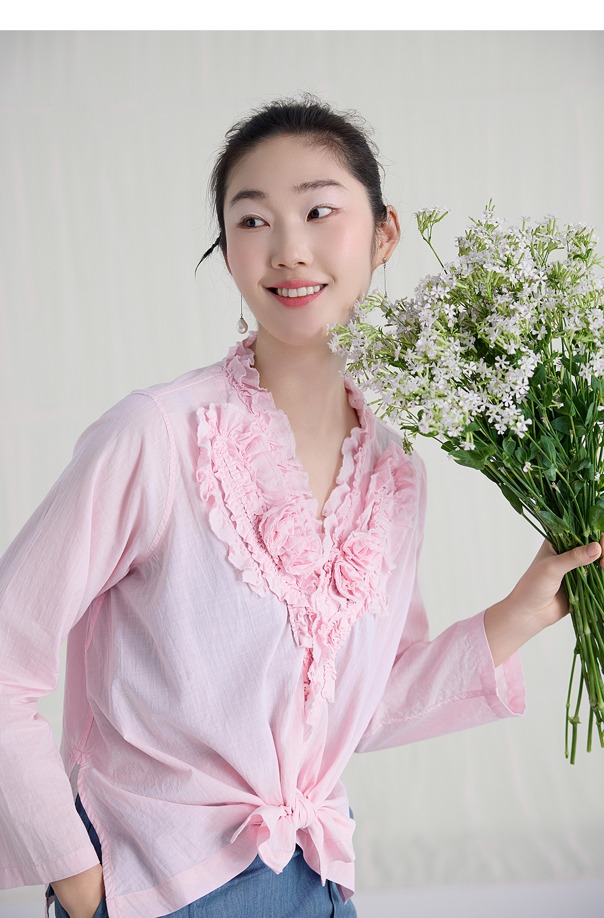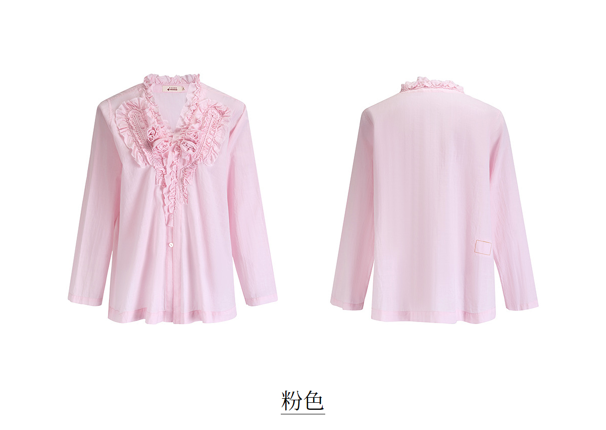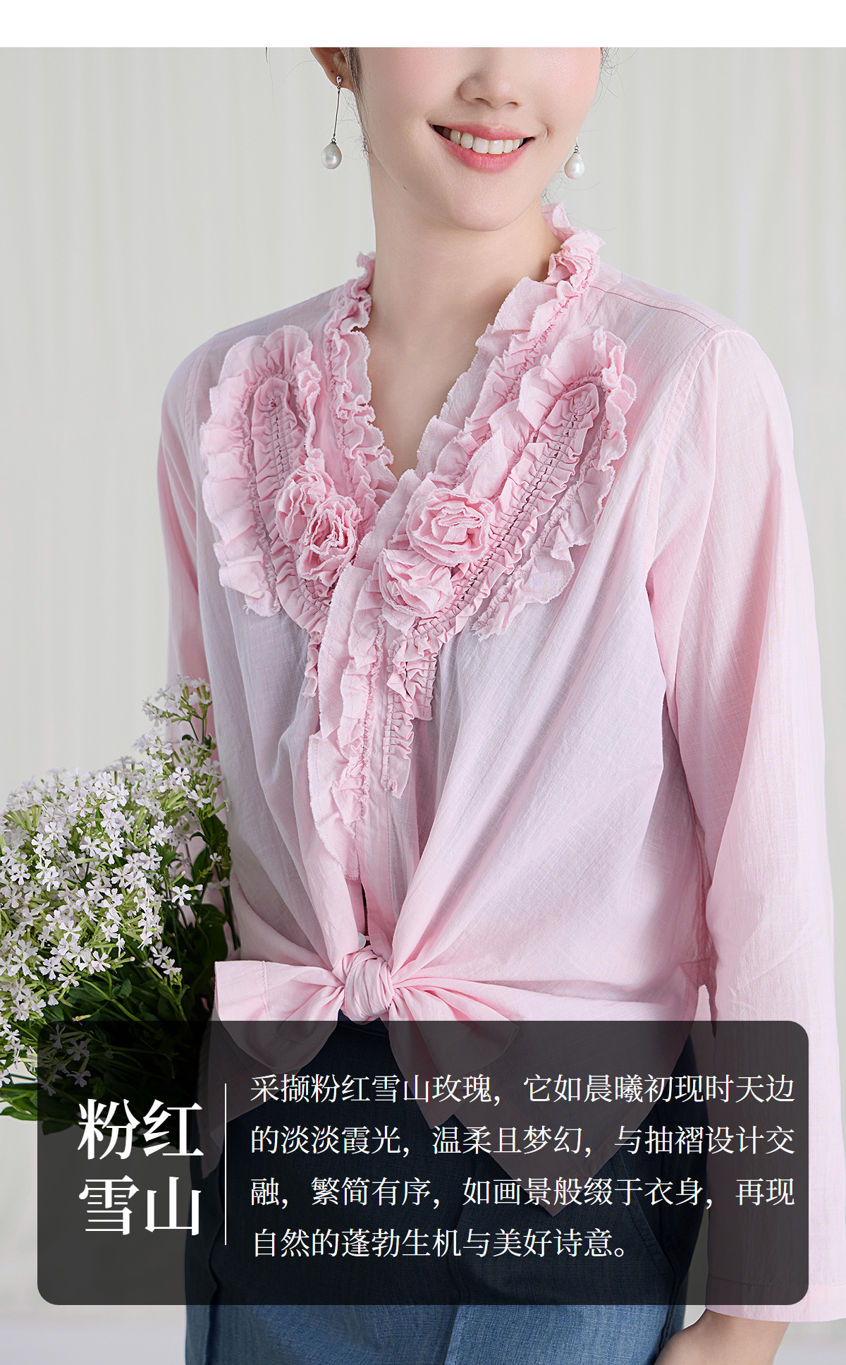 【林栖设计小店】(现货)纯棉衬衣优雅花边立体花宽松显瘦2025春夏新品长袖上衣女F1952306