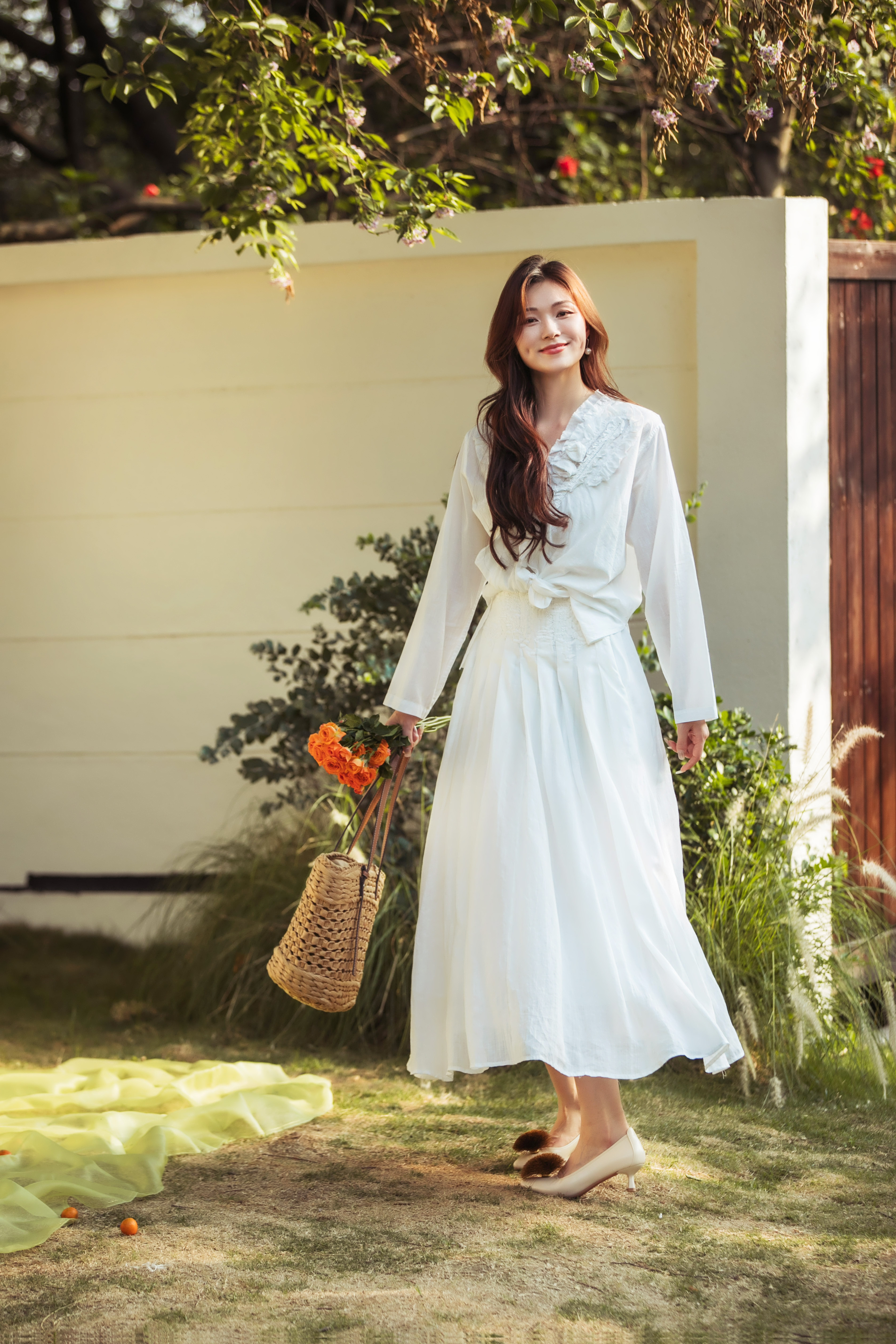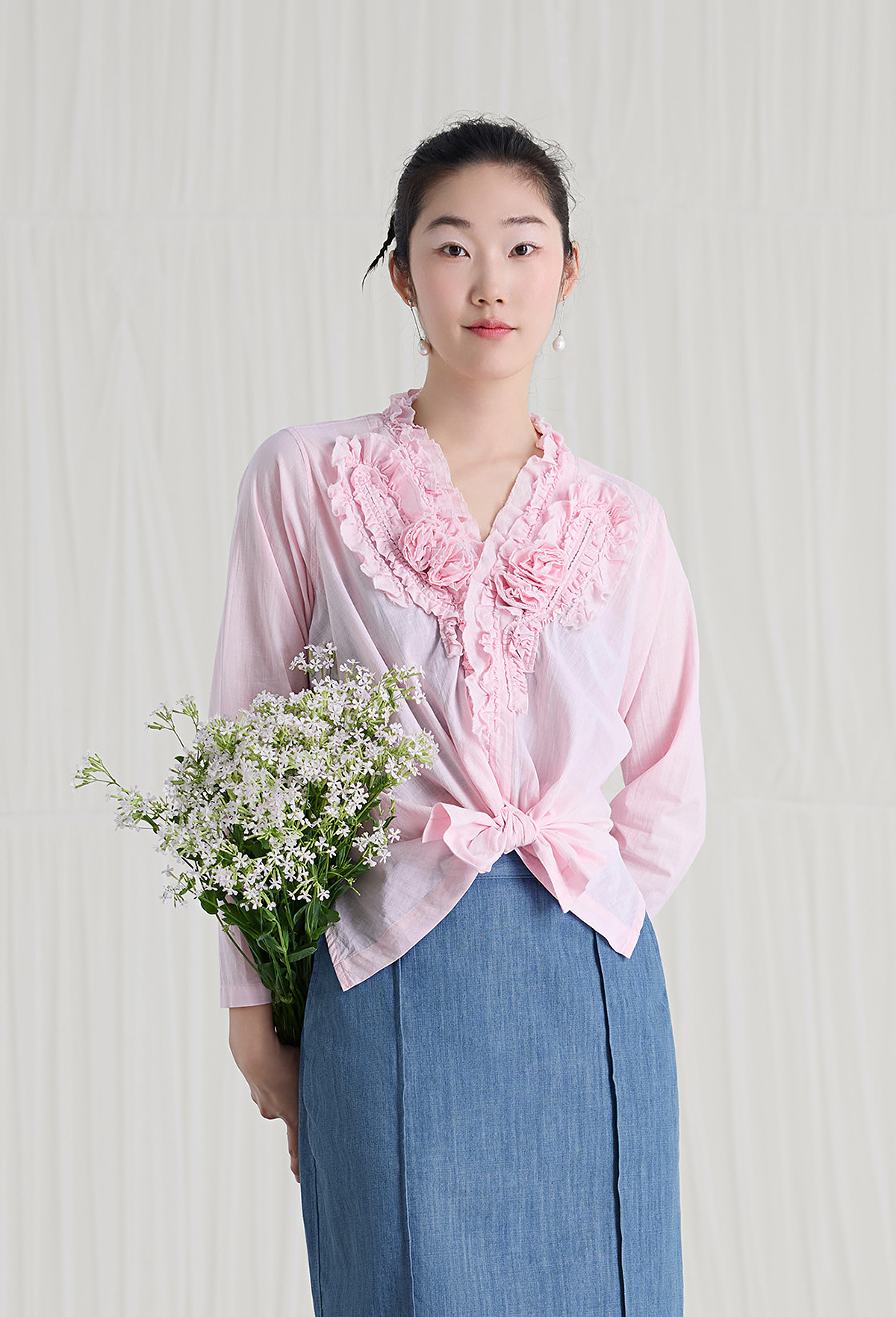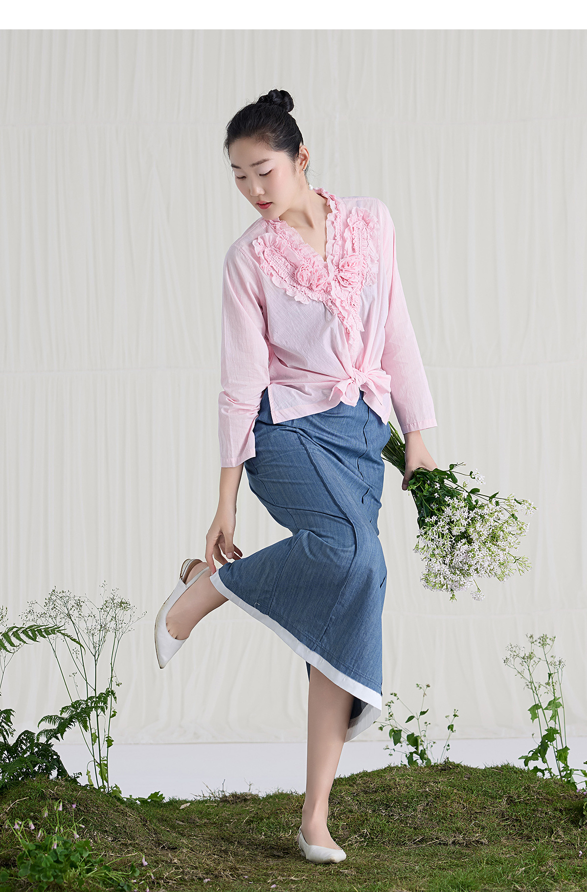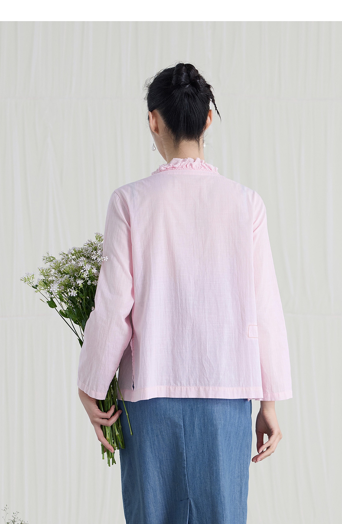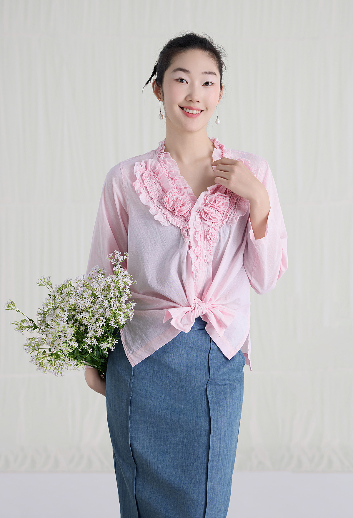 【林栖设计小店】(现货)纯棉衬衣优雅花边立体花宽松显瘦2025春夏新品长袖上衣女F1952306