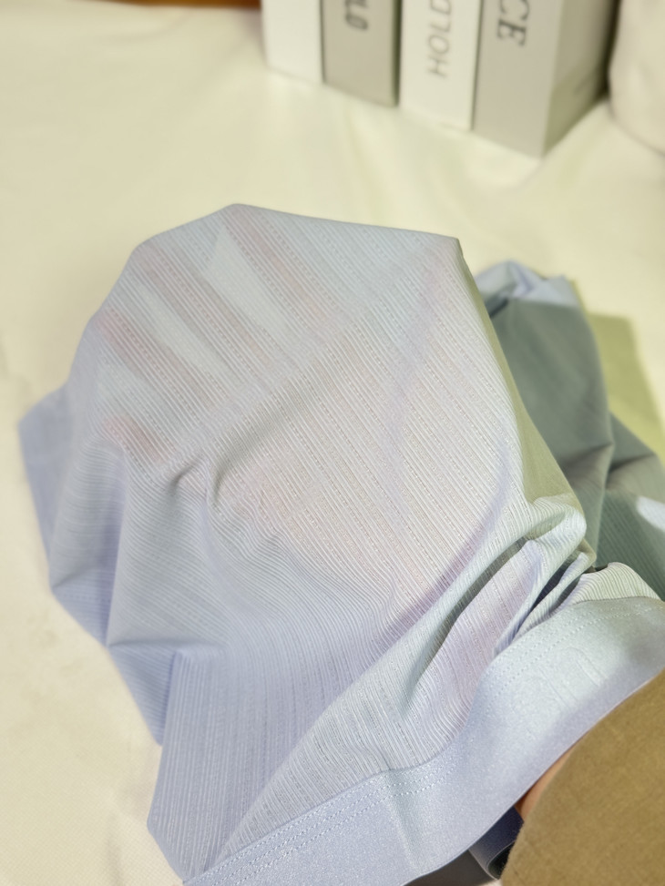 ✅采用超细冰感锦纶纤维 与抗菌氨纶纤维混合织造 结合高支高密工艺,面料贴服柔软细腻 接触自带天然凉感