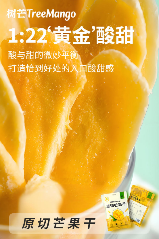 厚实果肉在嘴里化开的绵密感酸甜平衡的天然芒香🥭 完全没有纤维丝的困扰! 不齁甜、不粘牙、无负担的树芒芒果干,真的可以冲!