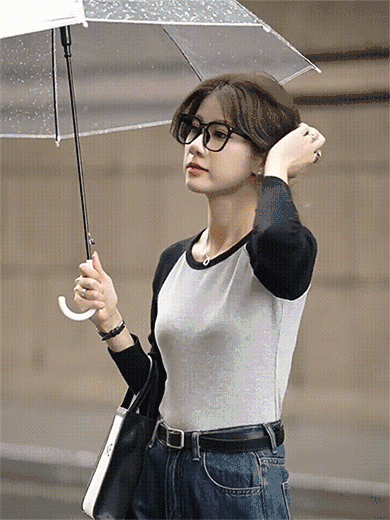 而且普通的纯色T穿起来容易像秋衣, 深色插肩拼色袖,会比纯色T恤更显瘦~ 穿起来背都薄了好几寸💥 撞边的颜色设计,简约而不简单 不管单穿还是叠穿都是天花板的存在🏆 一秒出街的款式谁会不爱呢💕