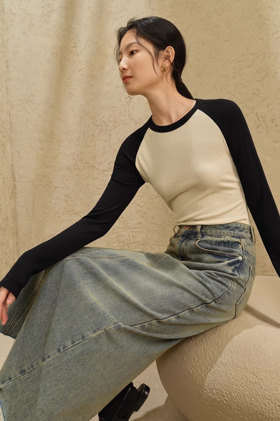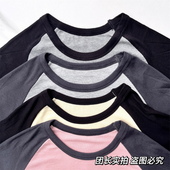 💰39.9早春王炸💥赵露思同款💓【茧墨】撞色插肩袖螺纹长袖上衣💕 美式复古甜辣感十足‼️bm版型炒正😎修身显胸❗️巨弹巨柔❗️直角肩➕小蛮腰显瘦不在话下🤪 ⭕️原版品质❗️版型炸裂❗️吊打网红店❗️ 🔸严选棉质面料,软糯亲肤,弹力巨大,不易变形,透气吸湿性极好! 🔸基础打底百搭不挑人!春秋冬三季实穿率最高的打底💯