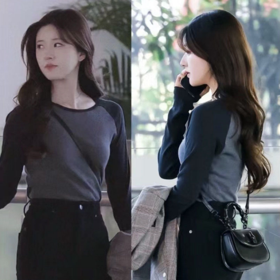 讲真的插肩袖适合的搭配有很多, 适配性超级高的,单穿or搭配都🉑️ 而且还可以弥补体态的不足, 早春衣橱来一件插肩袖的撞色上衣, 也会增添很多时尚感🤍🖤 现在开春了这样穿刚刚好 梨型身材的姐妹很适合这样穿🍐 简简单单显得整个人很修长!