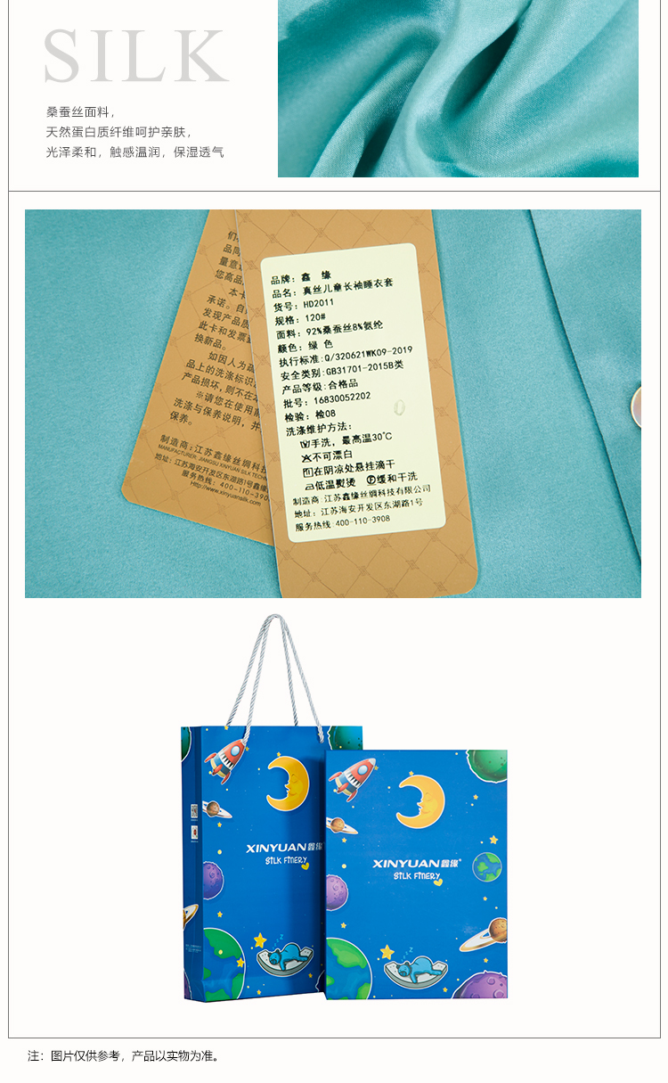 鑫缘 真丝儿童长袖睡衣套 HD2011