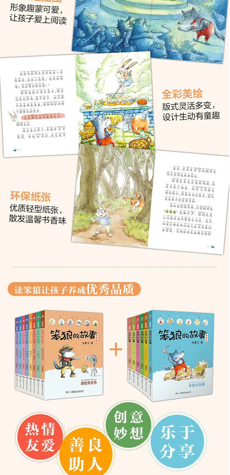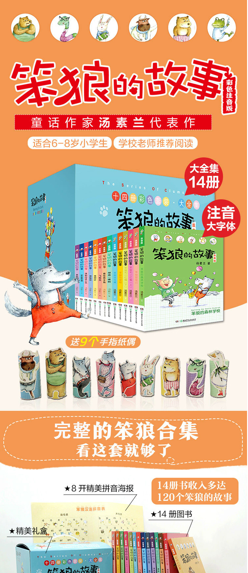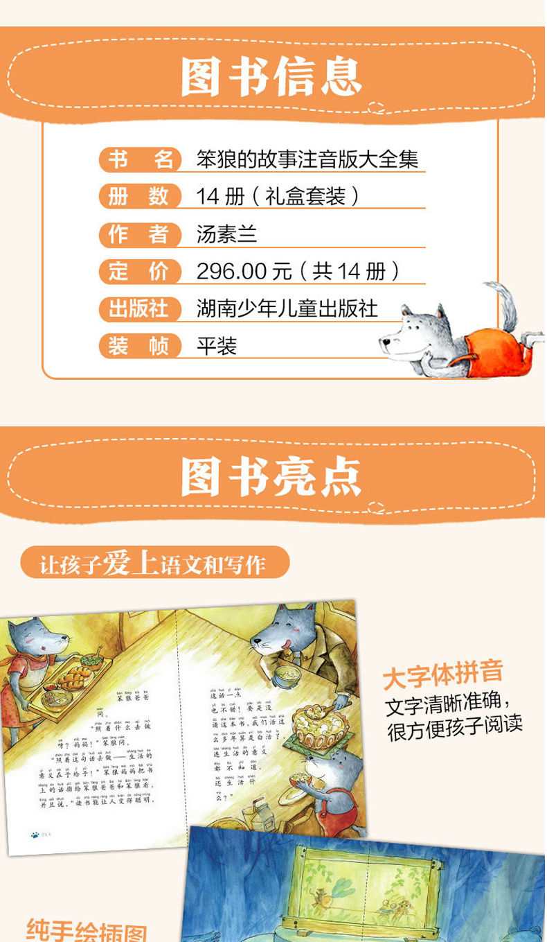 笨狼的故事注音版礼盒装全套14册 汤素兰一年级阅读课外书必读老师推荐经典二三年级课外阅读书籍小学生读物儿童故事书大全带拼音的绘本