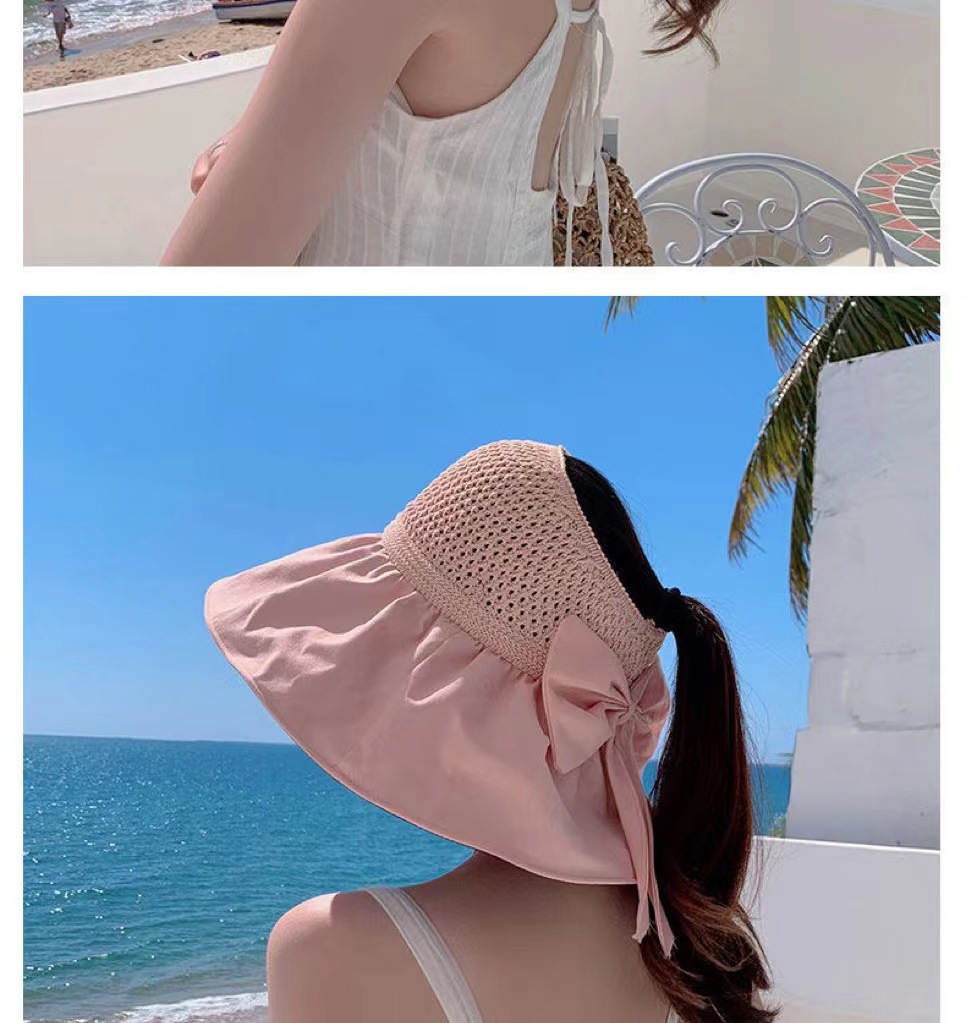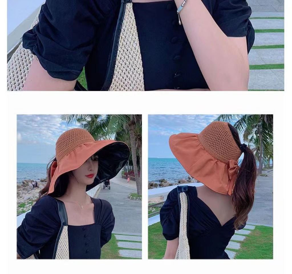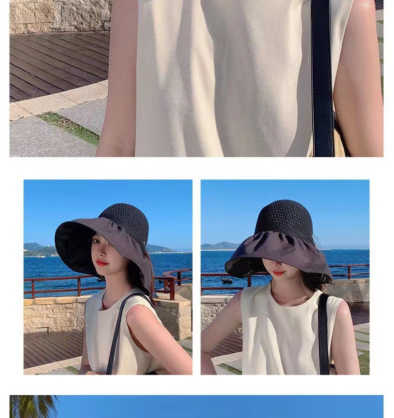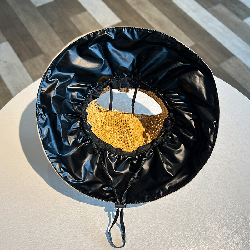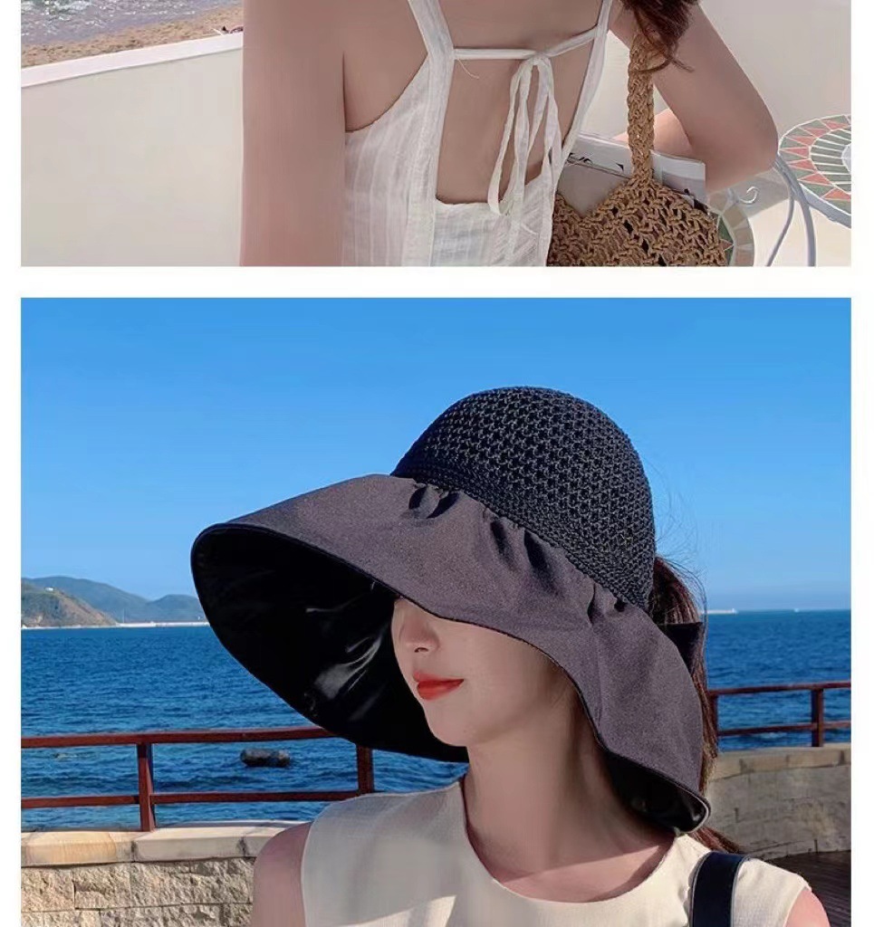 【舒适百搭!轻松戴出时尚感】夏季女时尚黑胶大帽檐防晒帽户外防紫外线遮阳帽显脸小空顶太阳帽。ry