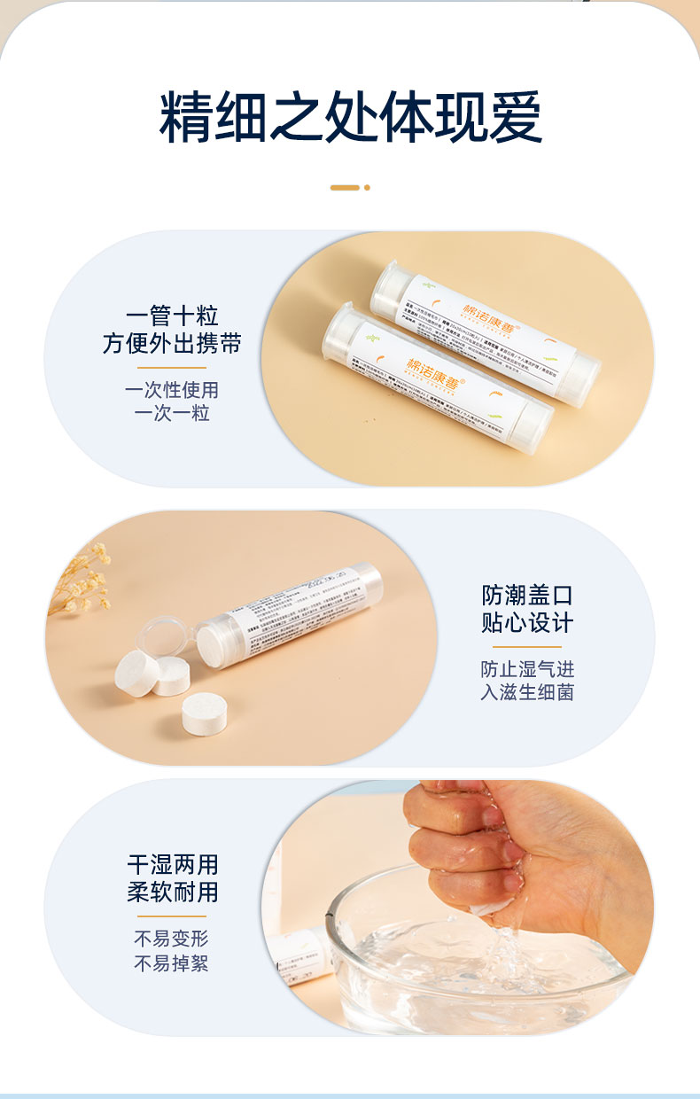 【到手5管=50粒】一次压缩毛巾旅行干湿两用纯棉洗脸巾酒店便携管状10粒压缩毛巾