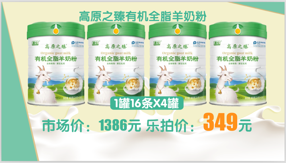 高原之臻有机全脂羊奶粉,400克(25克*16)/桶*4