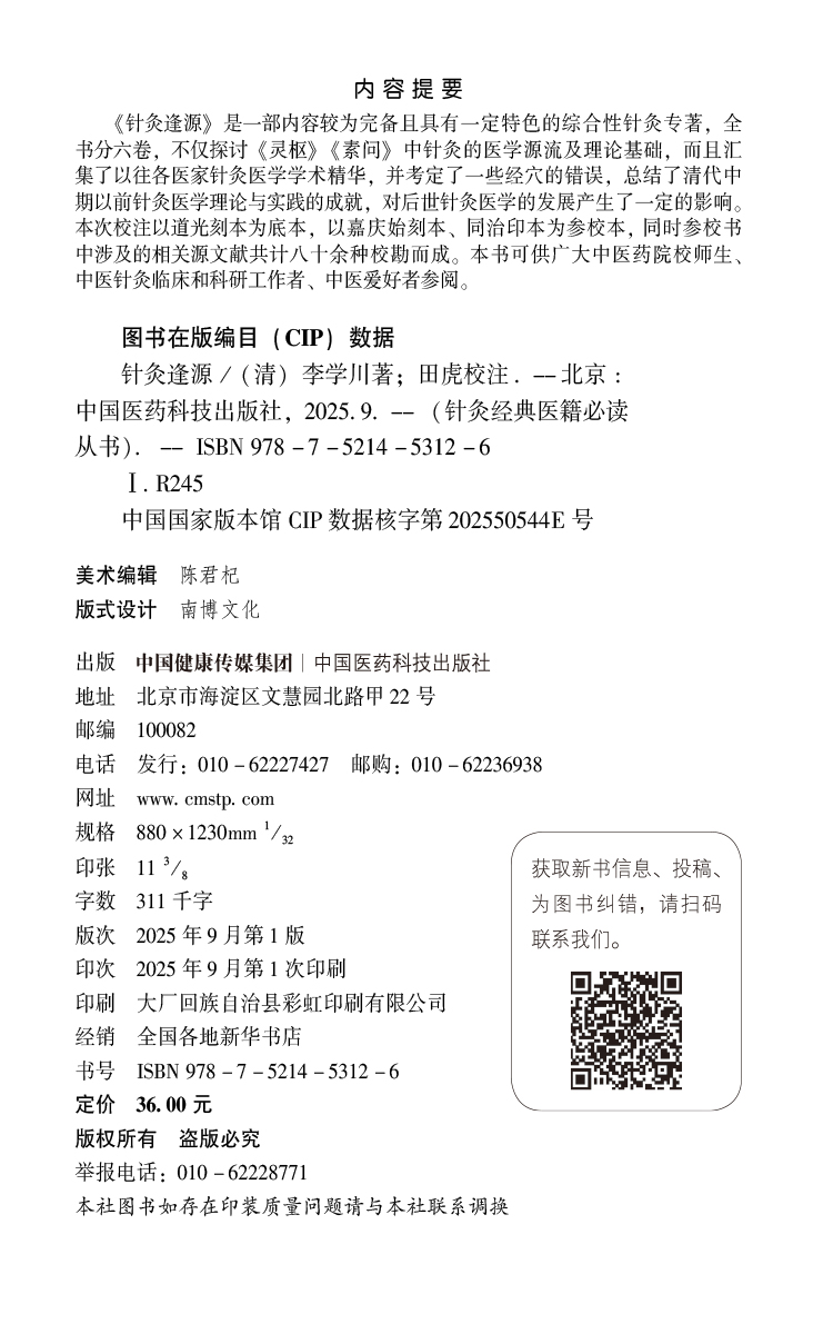 书名:针灸逢源(针灸经典医籍必读丛书)