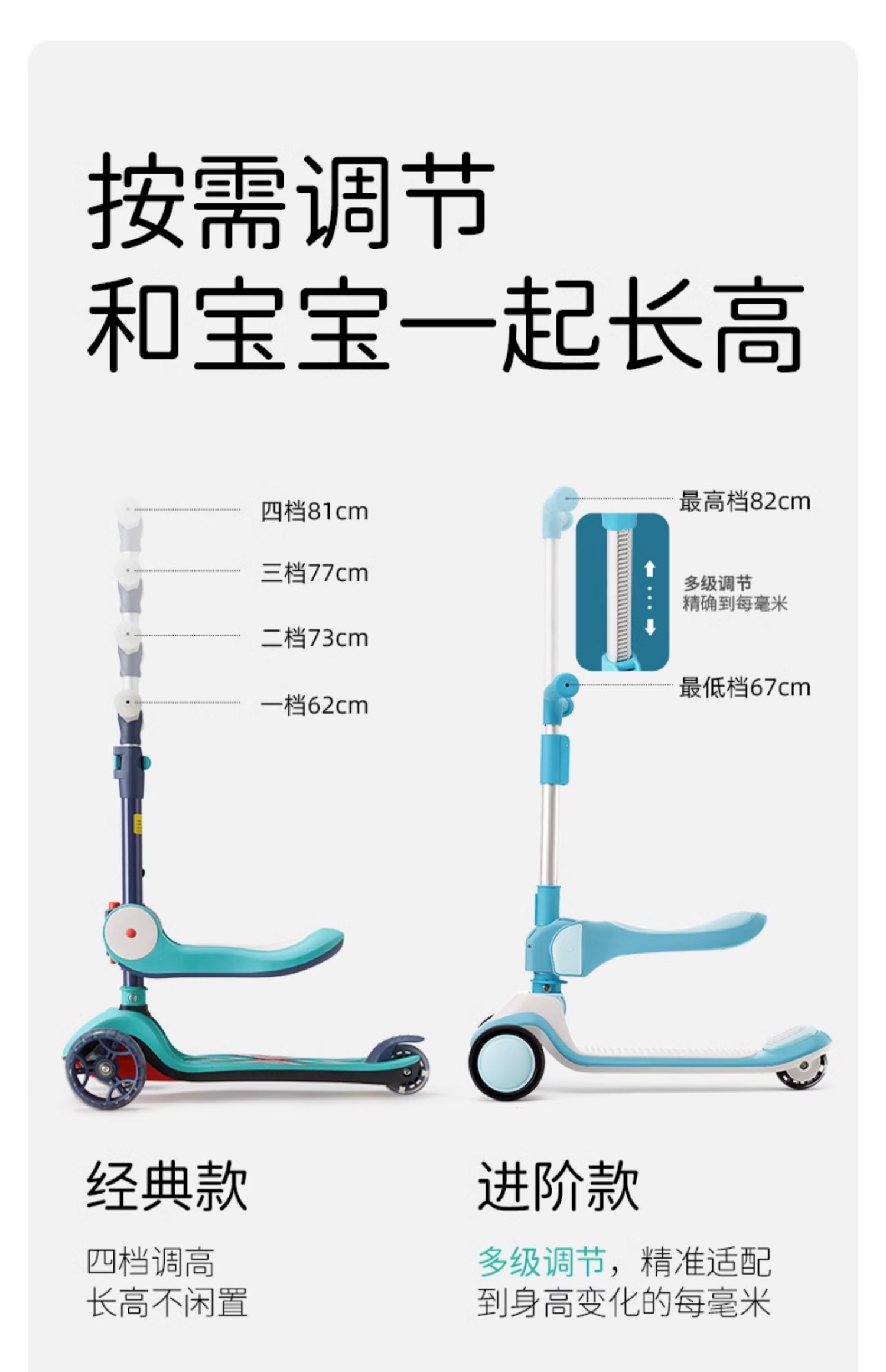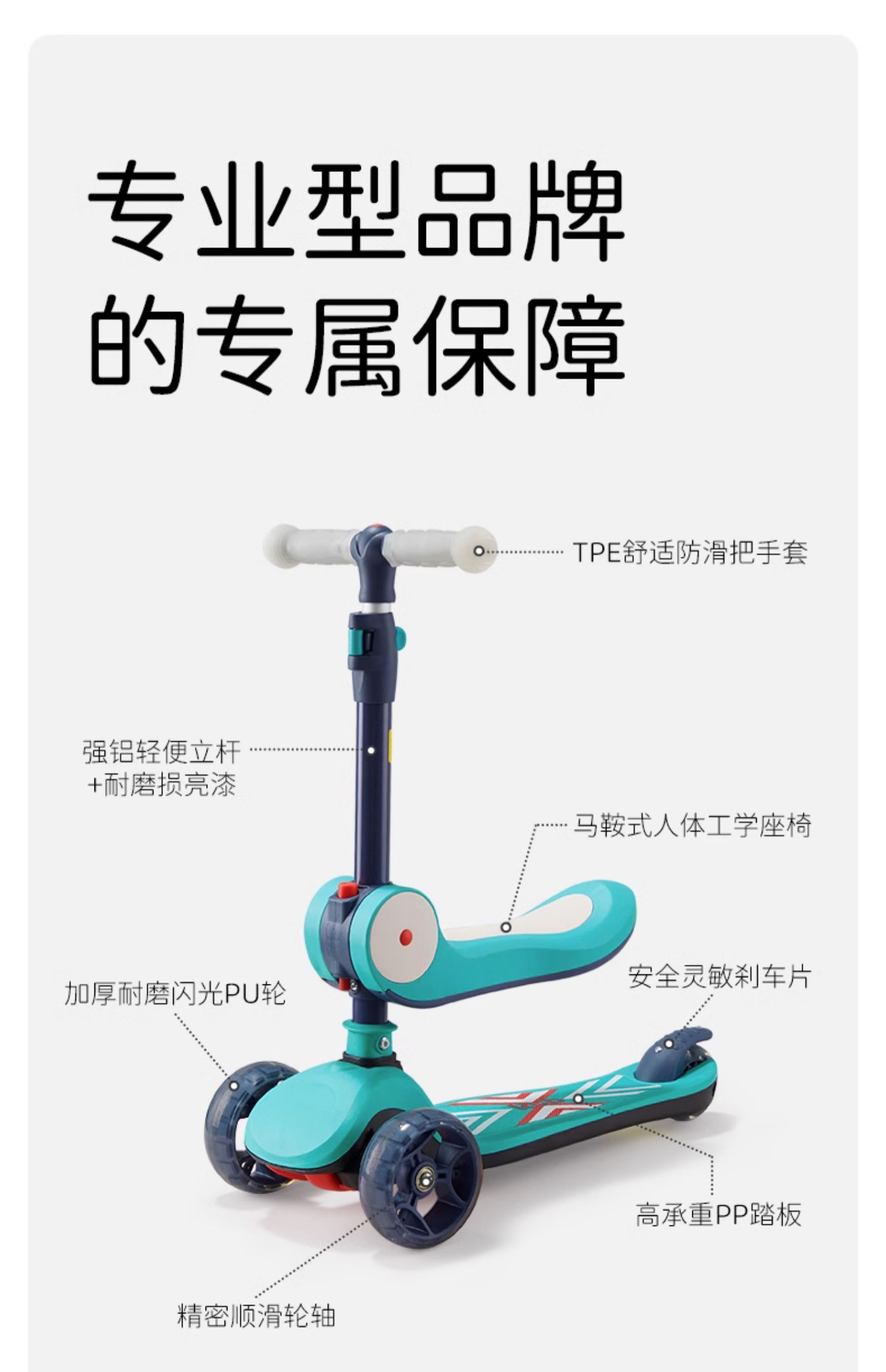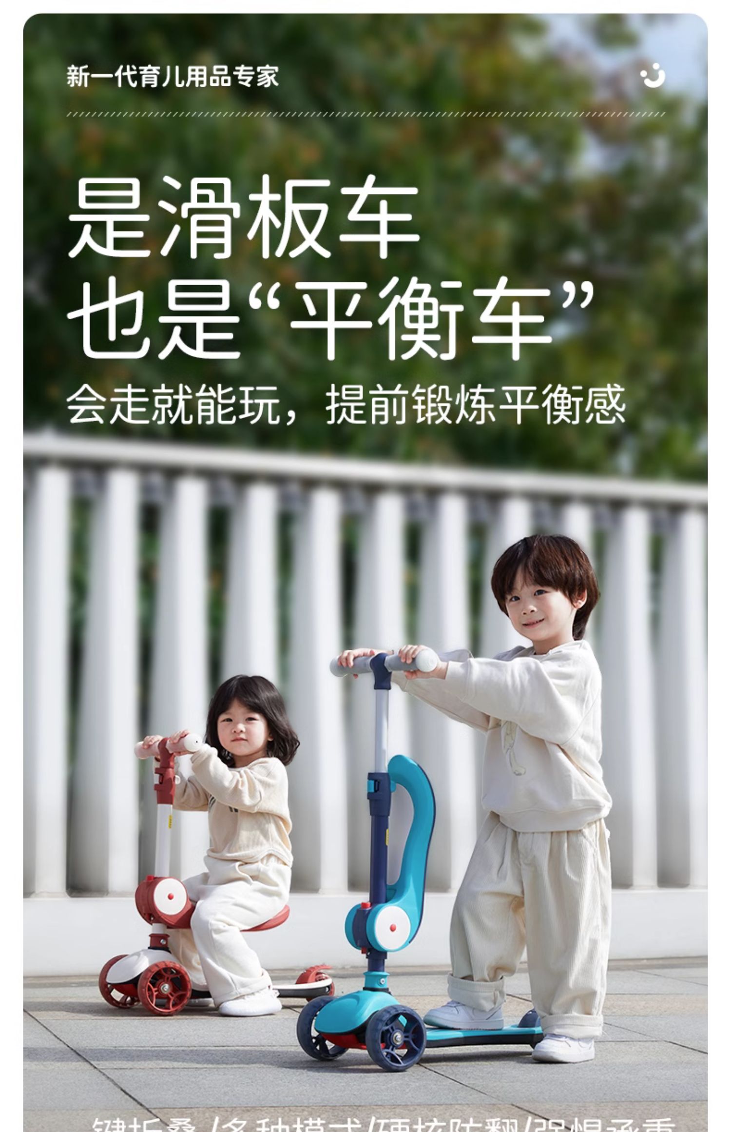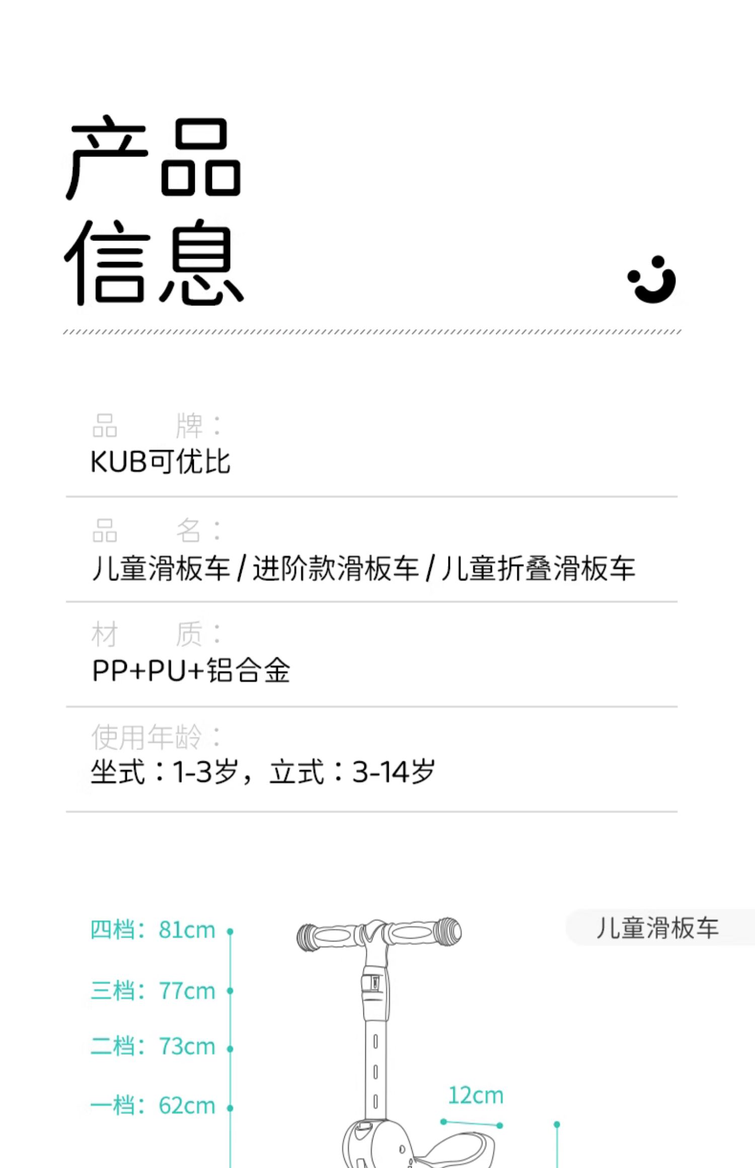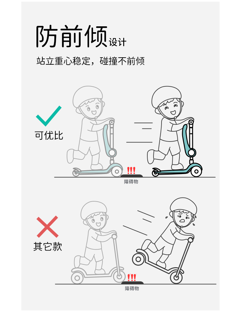 可优比儿童滑板车1-3-6岁宝宝踏板12岁小孩单脚滑滑车2宽轮溜溜车