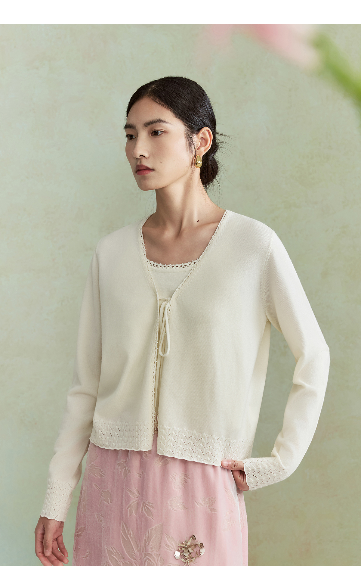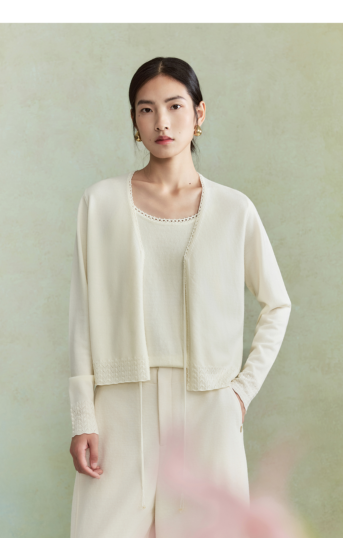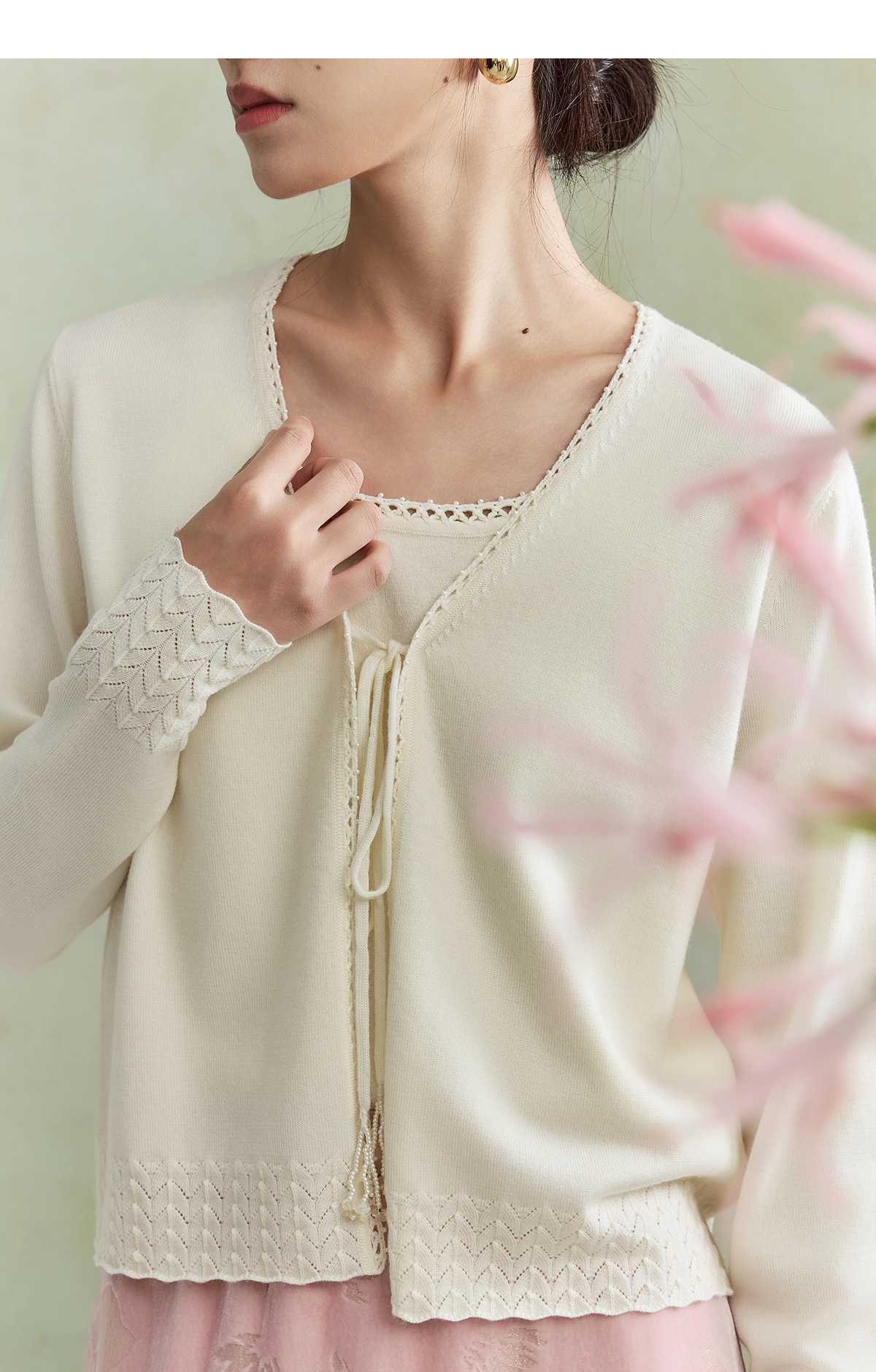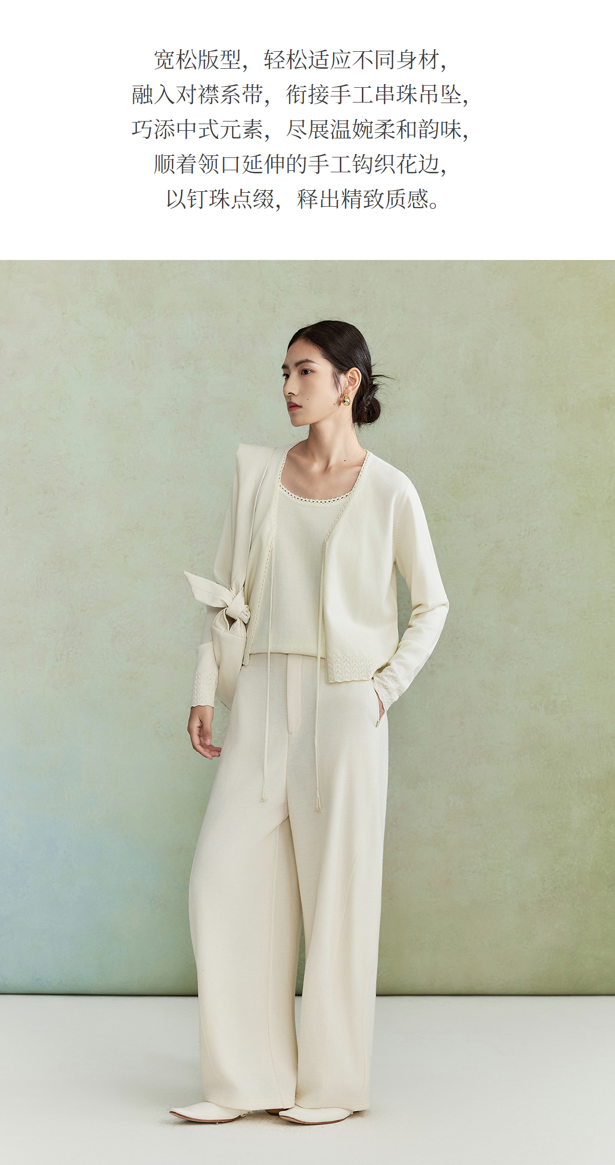 【林栖设计小店】(现货)澳毛外套镂空手钩花边钉珠轻中式2026早春新款毛织上衣女1961048