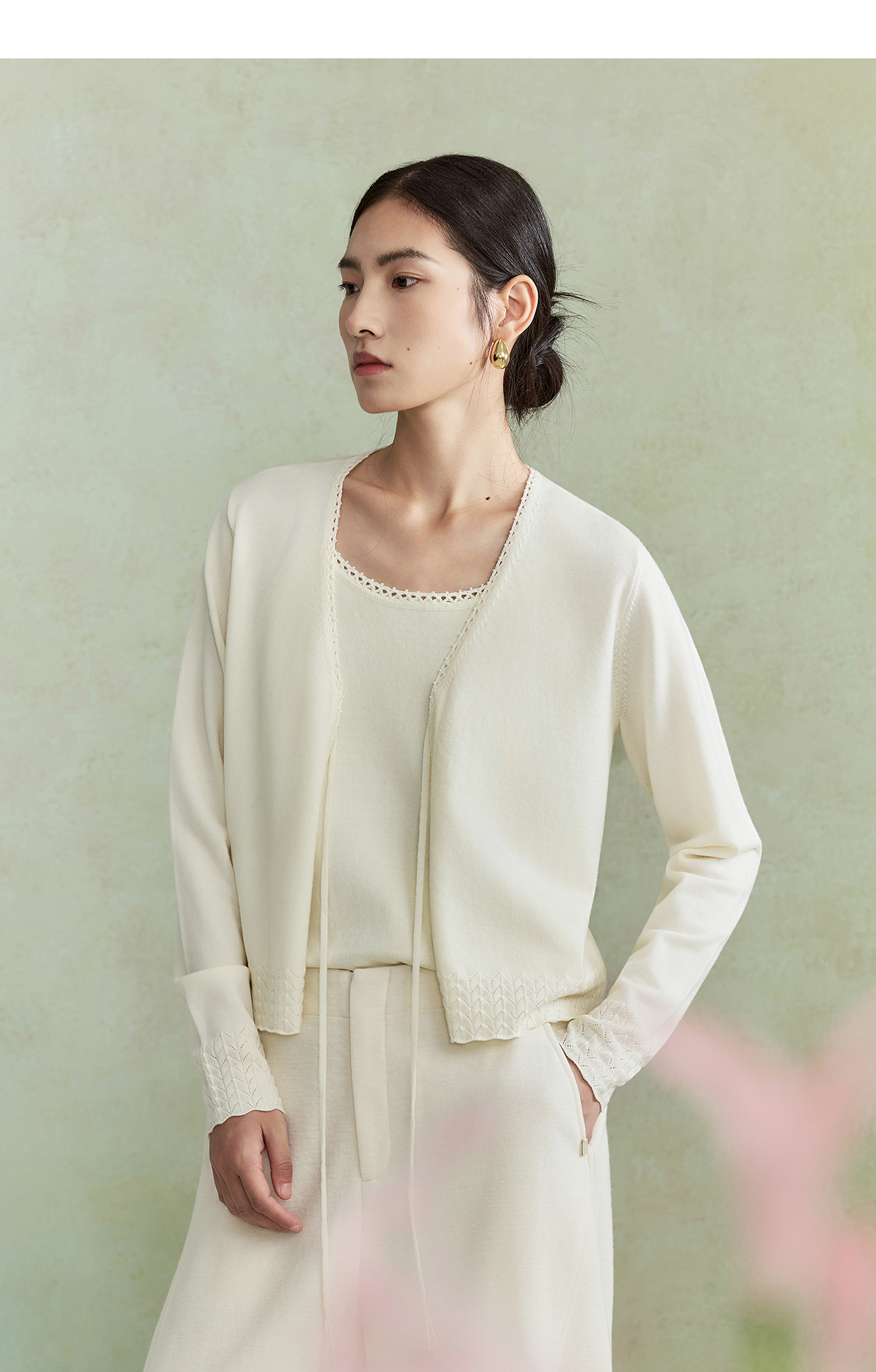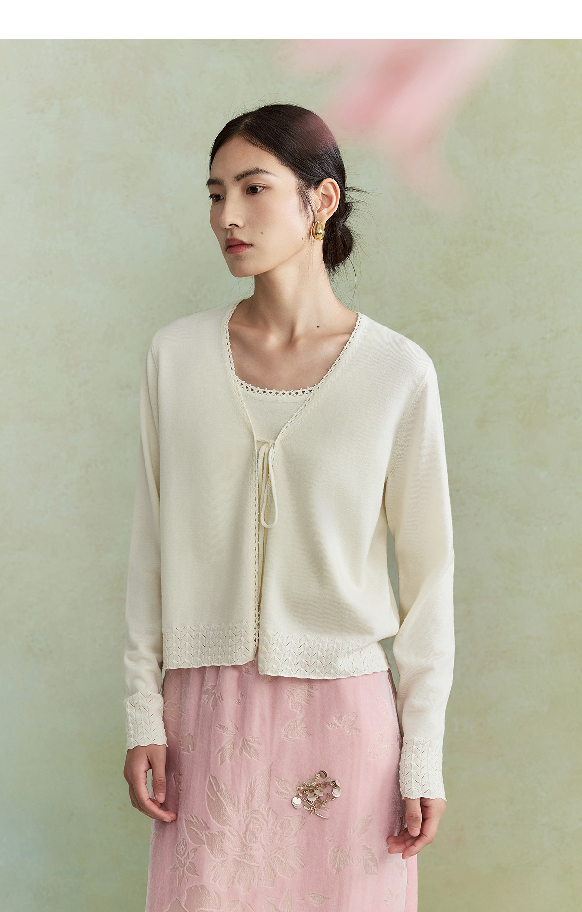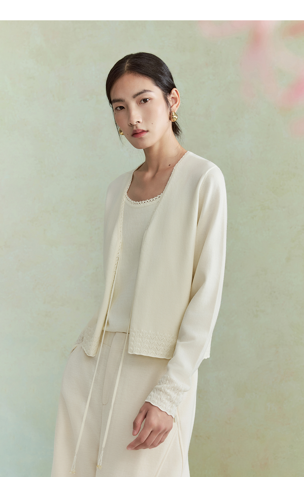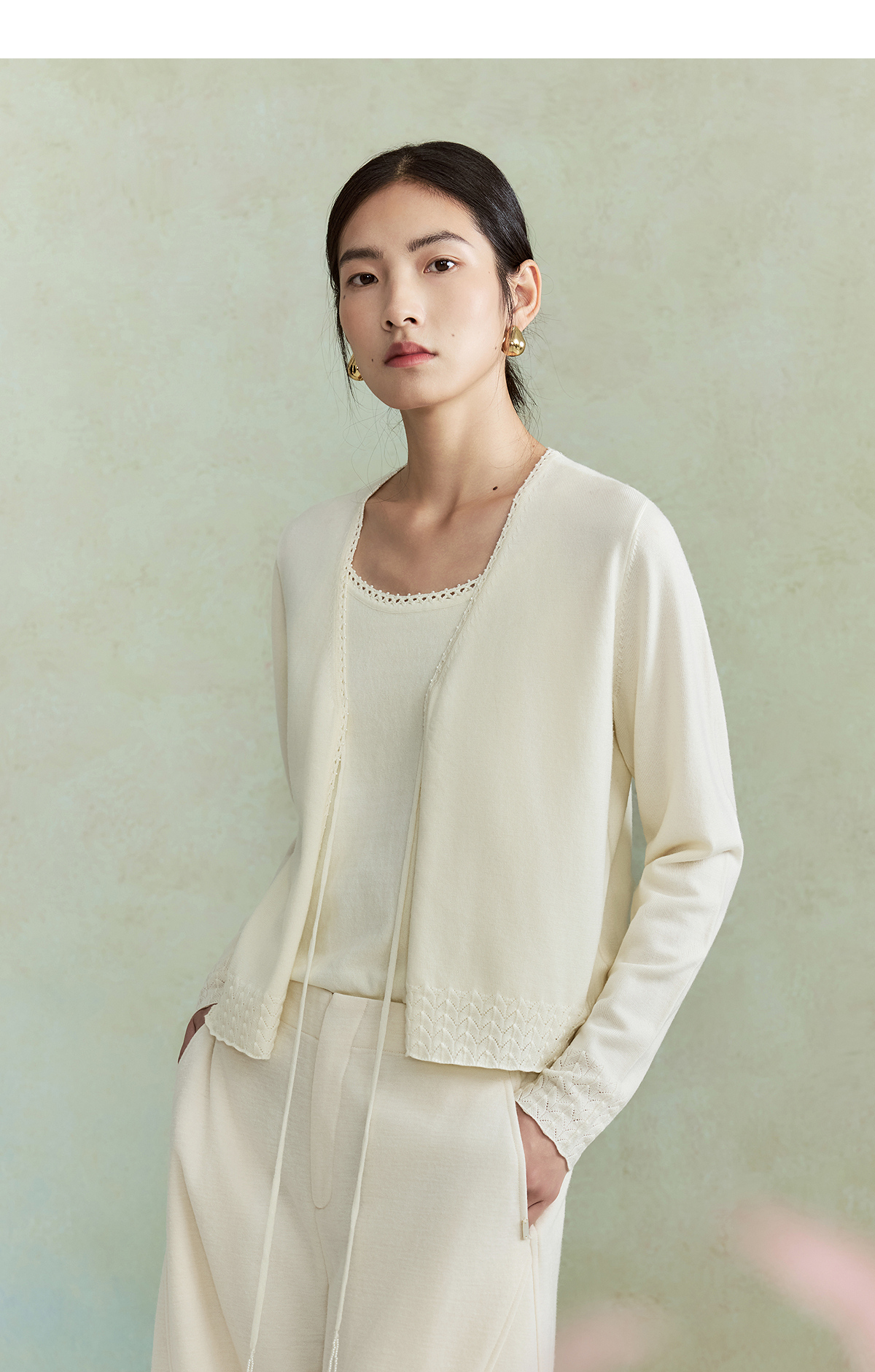 【林栖设计小店】(现货)澳毛外套镂空手钩花边钉珠轻中式2026早春新款毛织上衣女1961048